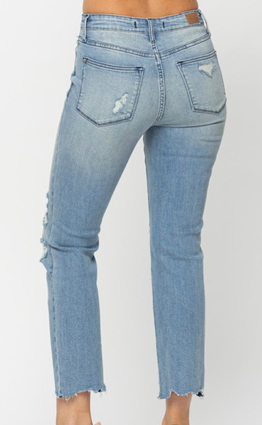 Judy Blue MR Destroyed Crop Straight Fit Jeans