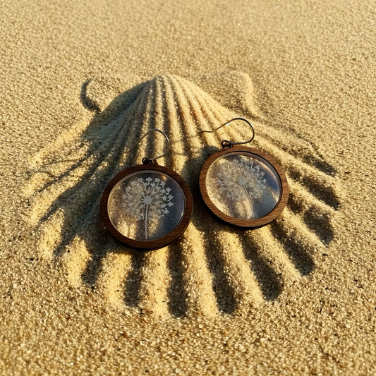Round wood/acrylic dandelion earrings