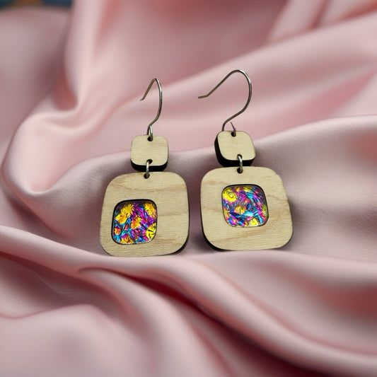 Pink dragonskin square wood earrings