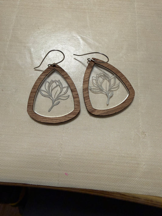 Triangle shaped Magnolia flower earrings