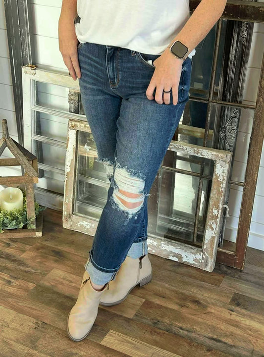 Judy Blue MR Destroyed Crop Straight Fit Jeans