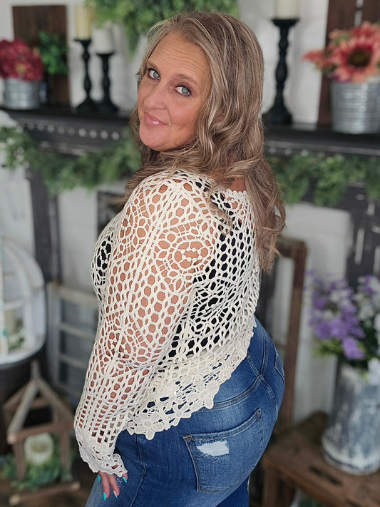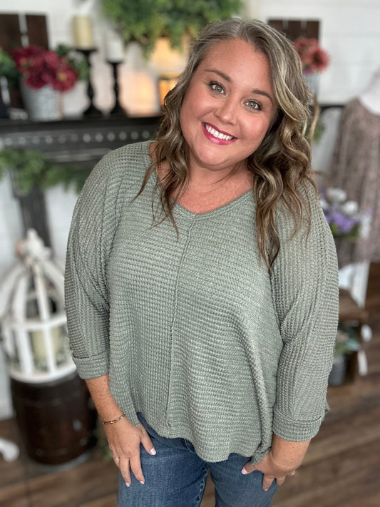 Vera V-Neck 3/4 Sleeve Jacquard Top