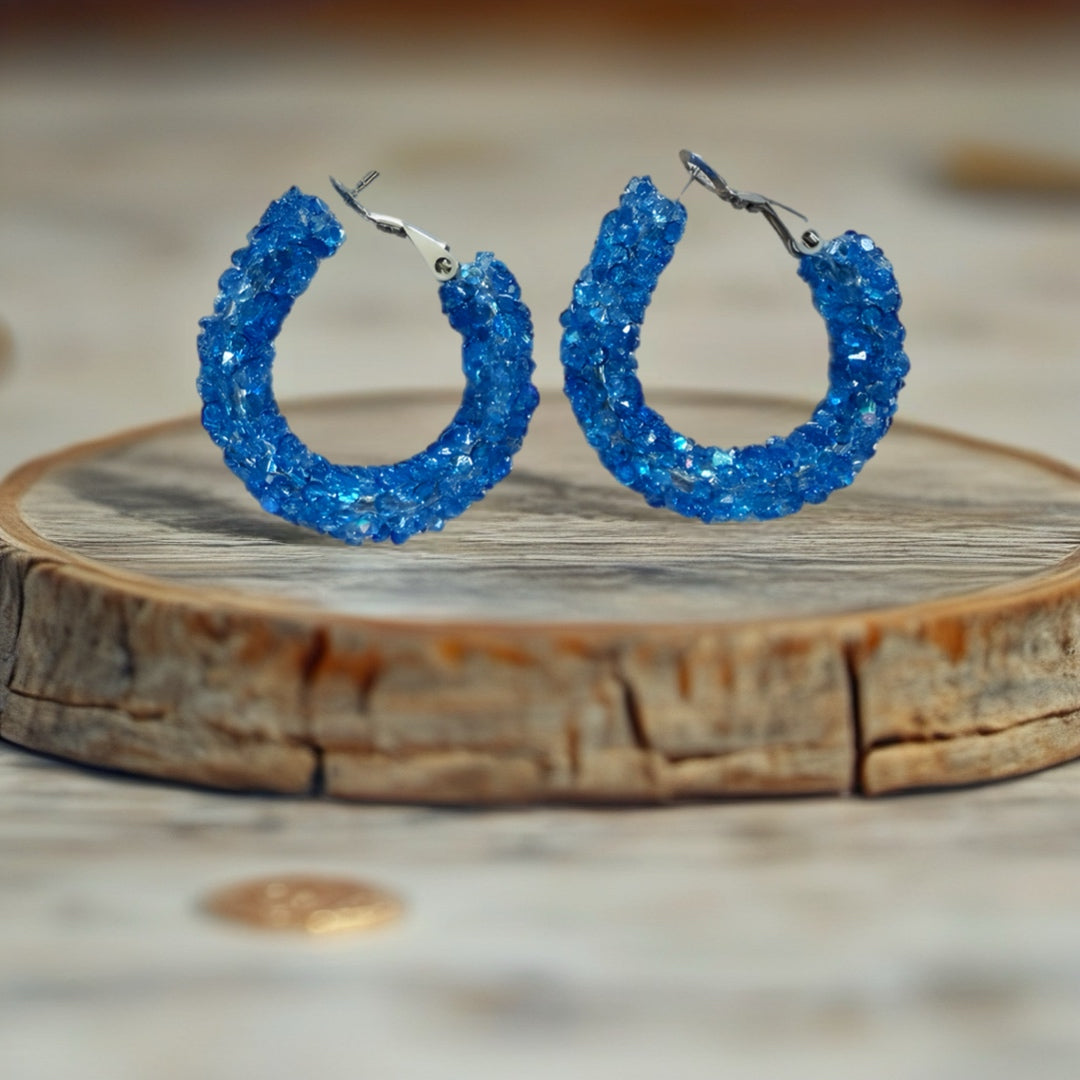 Add a pop of sparkle to your day with these 25mm blue hoop earrings! Handmade with care and hypoallergenic materials, they’re perfect for sensitive ears and ready to brighten any outfit with a playful shimmer. Lightweight and eye-catching, these hoops bring fun and flair wherever you go.