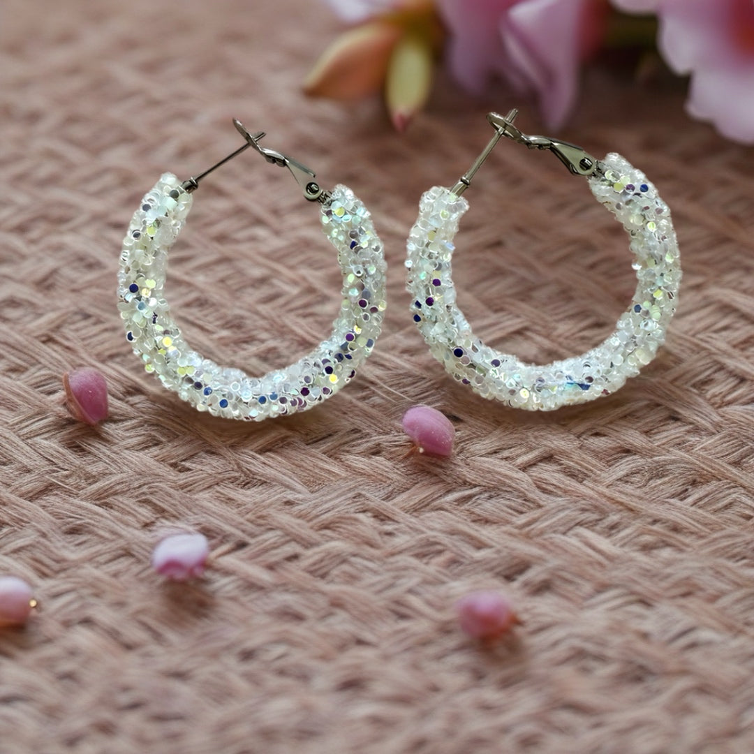 Add a touch of sparkle to your day with these 25mm white hoop earrings! Handmade with care and hypoallergenic materials, they’re perfect for sensitive ears and ready to brighten any outfit with a playful shimmer. Lightweight and dazzling, these hoops are your new go-to for effortless sparkle.