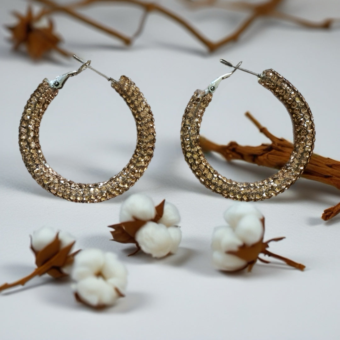 Add a touch of sparkle to your day with these 35mm champagne-colored hoop earrings. Handmade with care and hypoallergenic materials, they’re perfect for sensitive ears and ready to brighten any outfit with a playful shimmer. Lightweight and dazzling, these hoops bring just the right amount of sparkle to your style!
