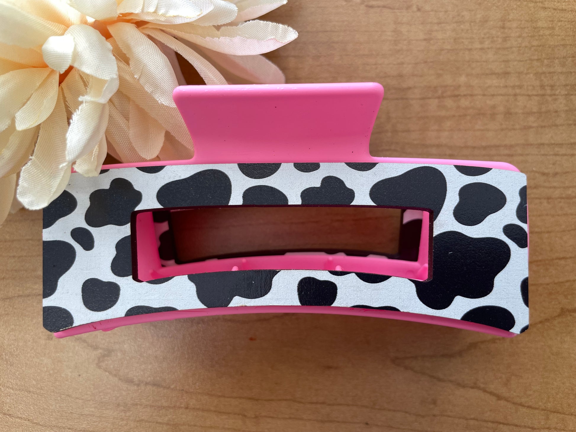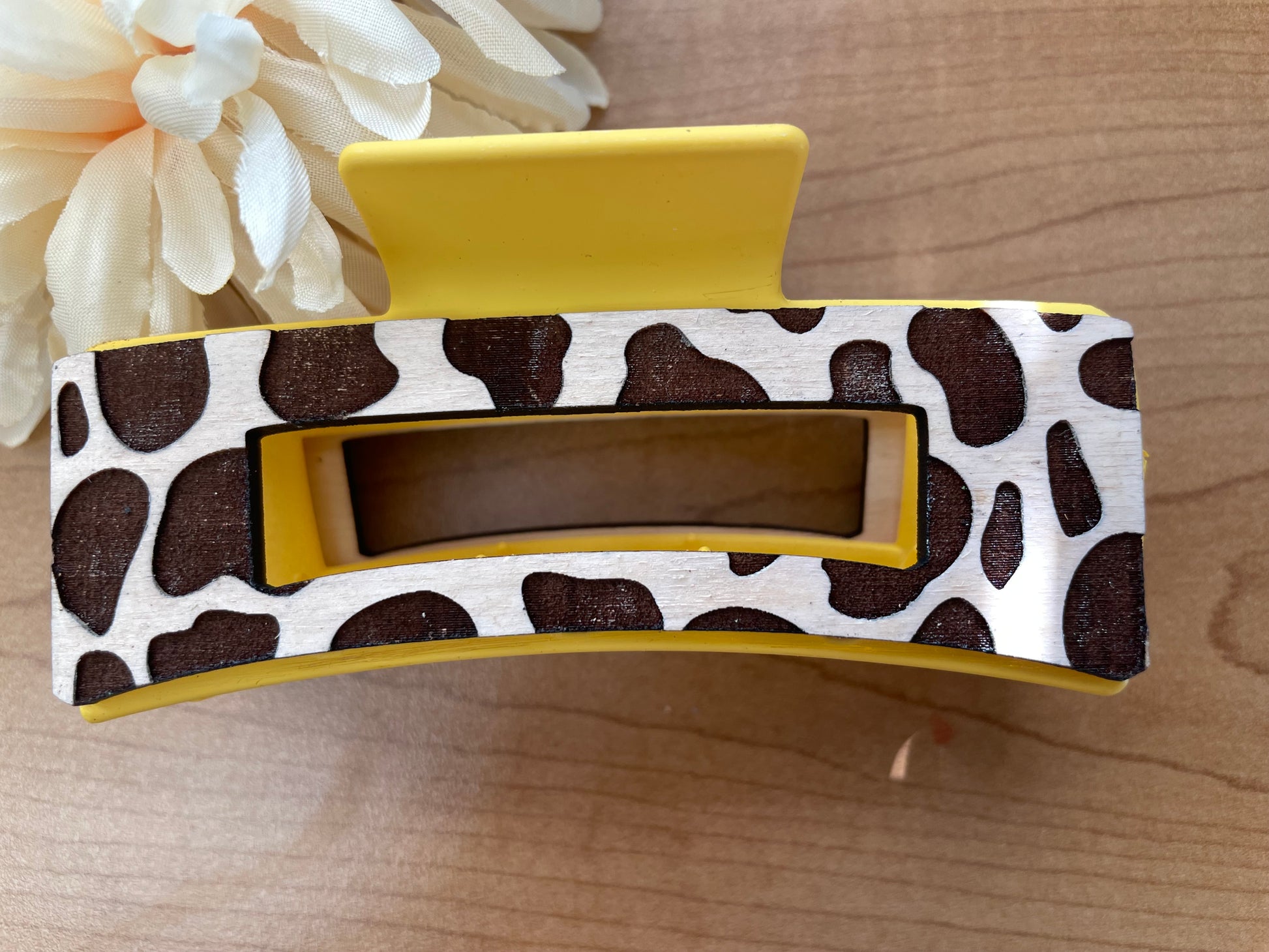Unleash your inner cowgirl with our 4" Wooden Cutout Cow Print Claw Clip! Made of sturdy wood, this clip features a fun cow print design that adds a touch of western charm to any hairstyle. Perfect for holding hair in place while adding a touch of style. Yeehaw!