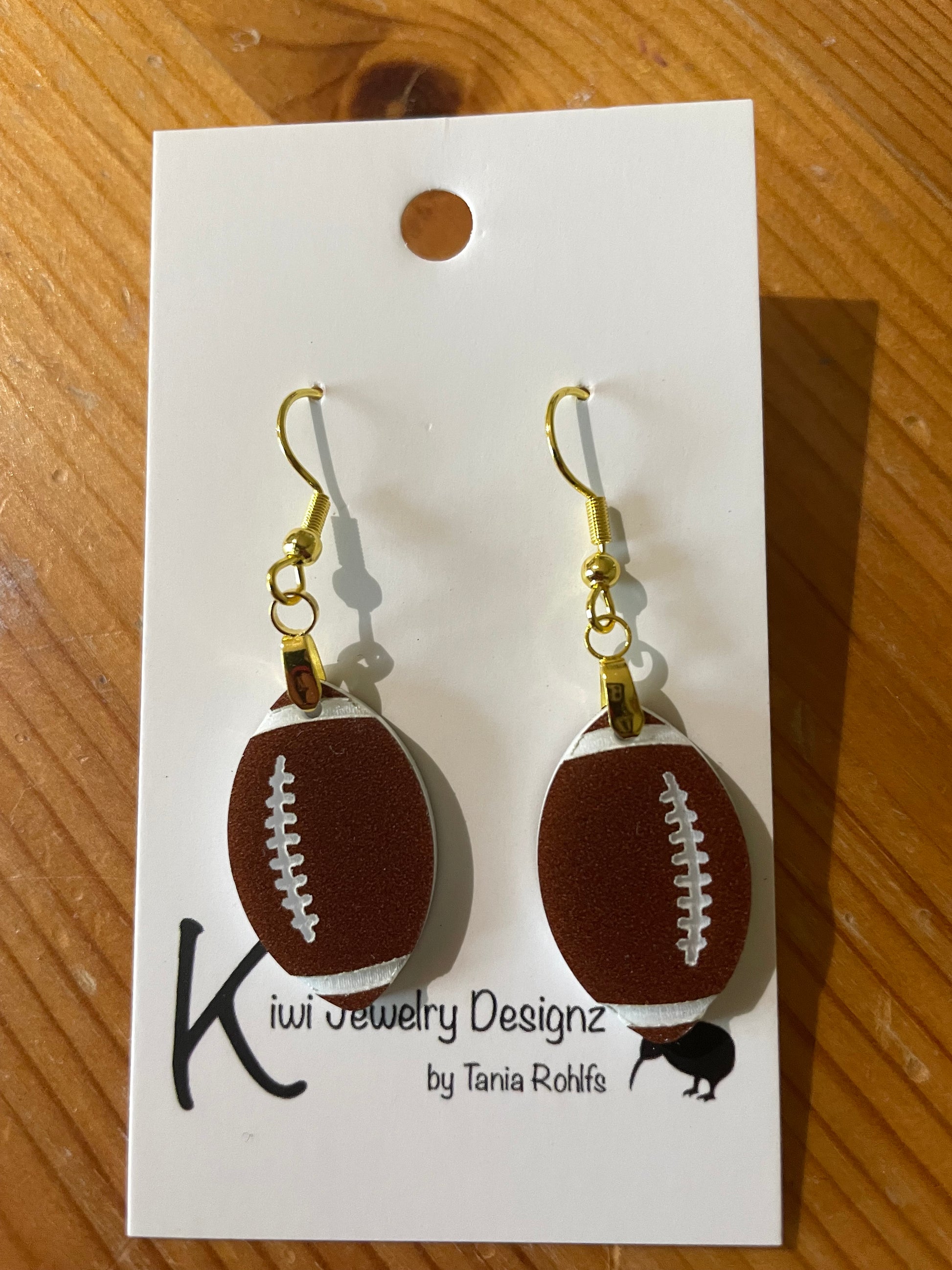 Score some serious style points with our Acrylic Football Earrings! Show off your team spirit with these unique earrings, featuring a football design made of acrylic. The gold earring wires add the perfect touch of elegance. Get ready to root for your team in style!