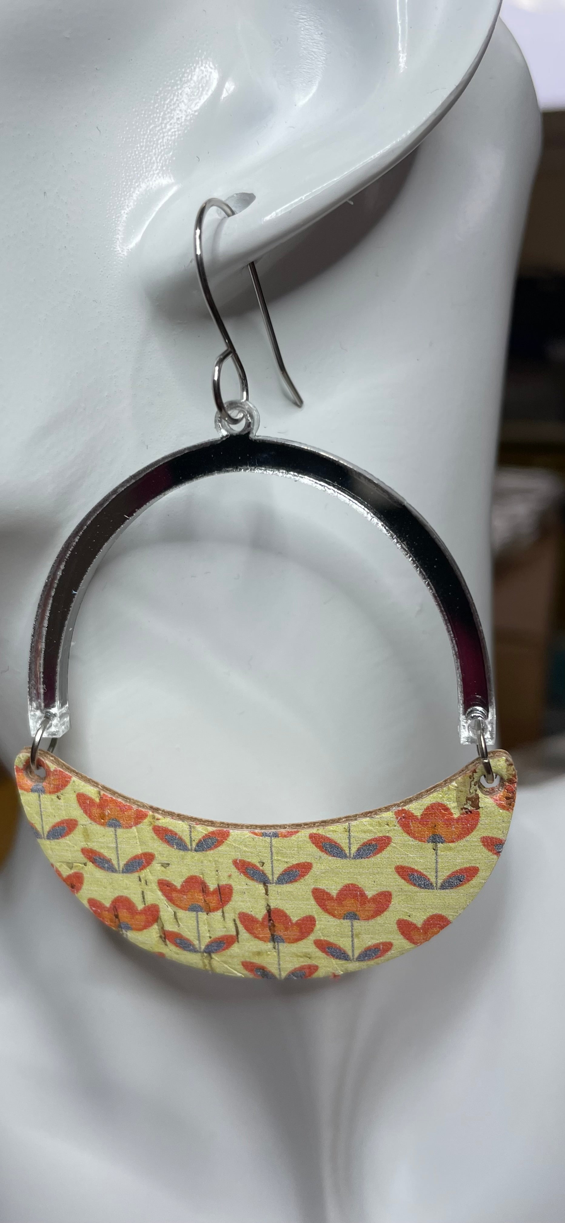Indulge in these exquisite Acrylic half hoop & Flowers on Leather earrings. Hand made with intricate floral patterns on real leather, these earrings are both elegant and hypoallergenic. Add a touch of luxury to your wardrobe with these unique statement pieces.
