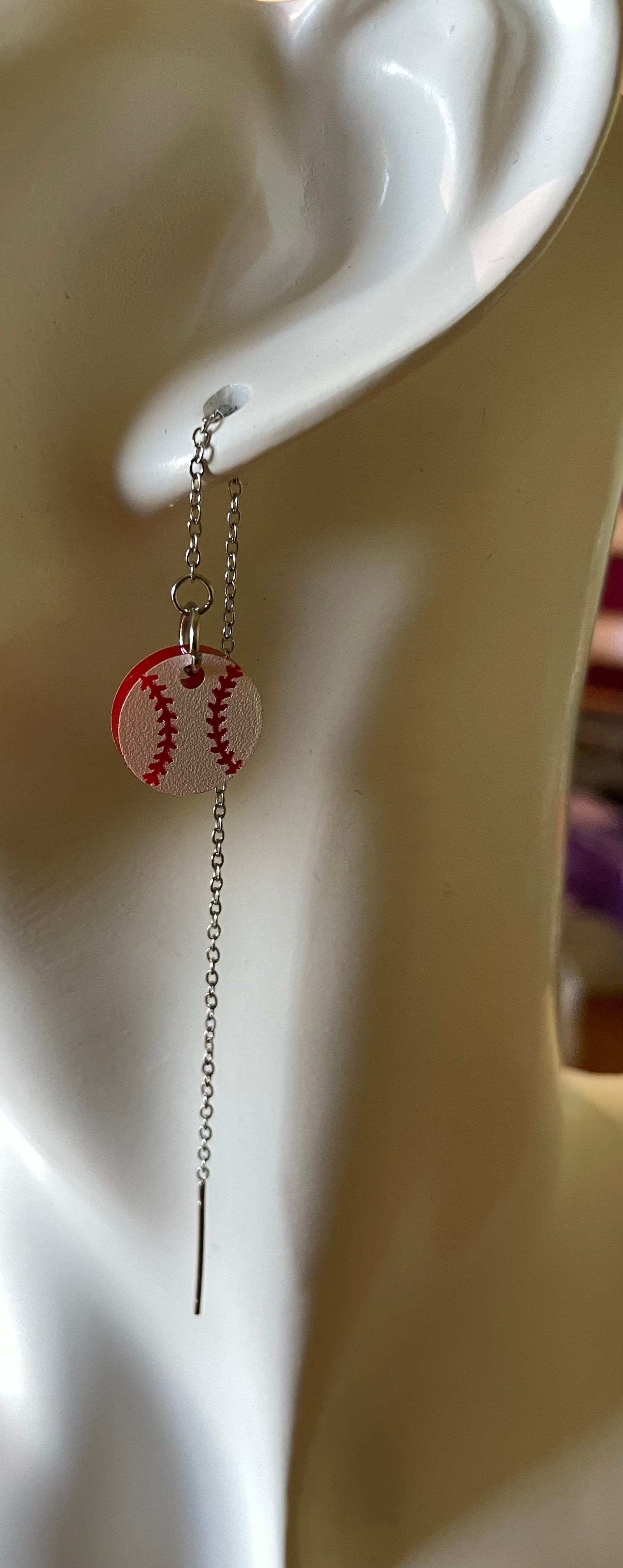 Baseball threader drop earrings