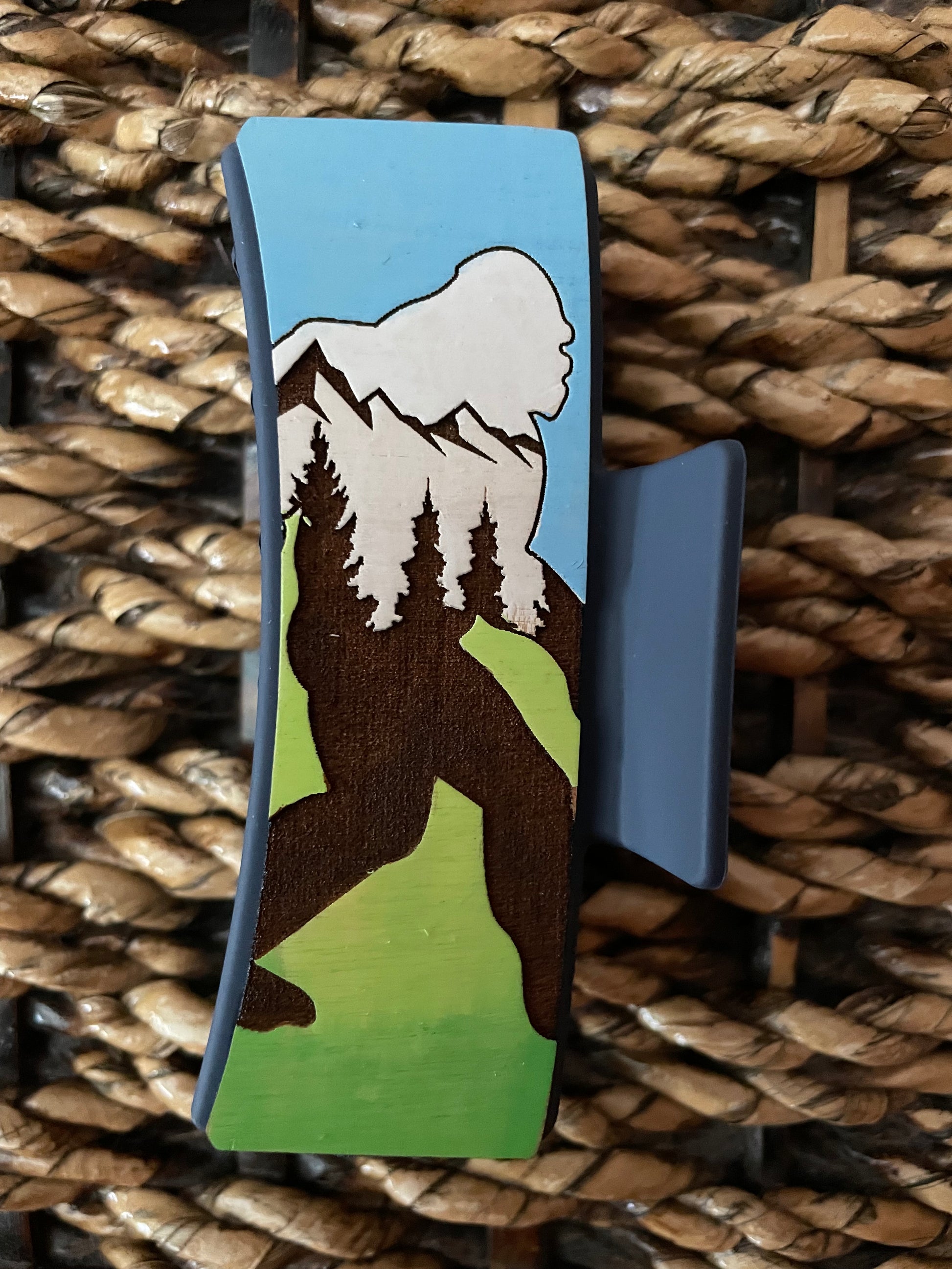 Add some playful flair to your hair with our Big Food in the Mountains 4" claw clip. This hand painted, wood clip features a big foot design, making it the perfect accessory for any quirky and fun style. Get ready to turn heads and show off your unique sense of humor!