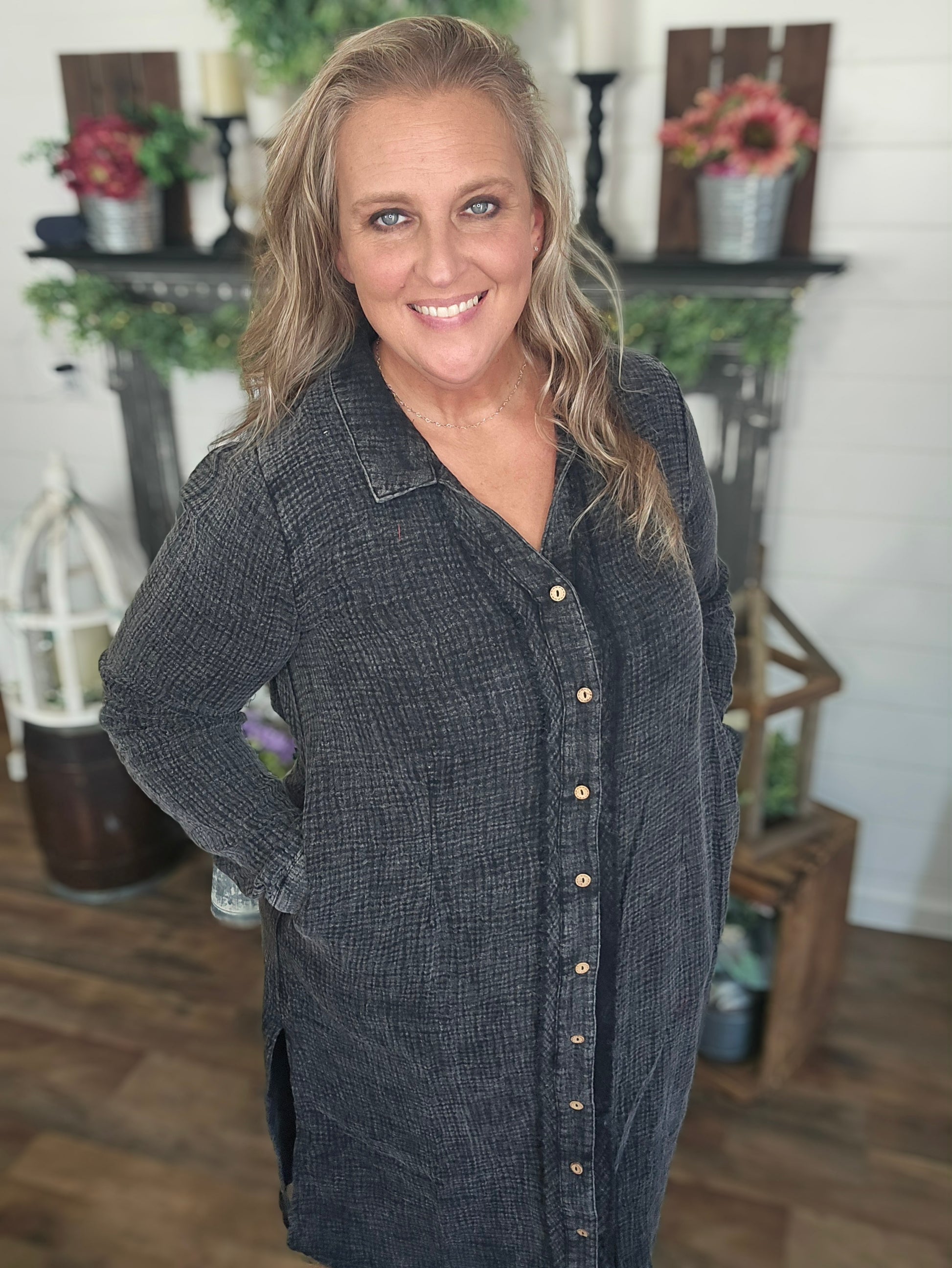 Designed for comfort and style, the Braleigh Button Down Shirt Dress is made with soft and breathable cotton gauze. Perfect for any occasion, its lightweight fabric ensures a comfortable fit while its classic button down design adds a touch of sophistication.