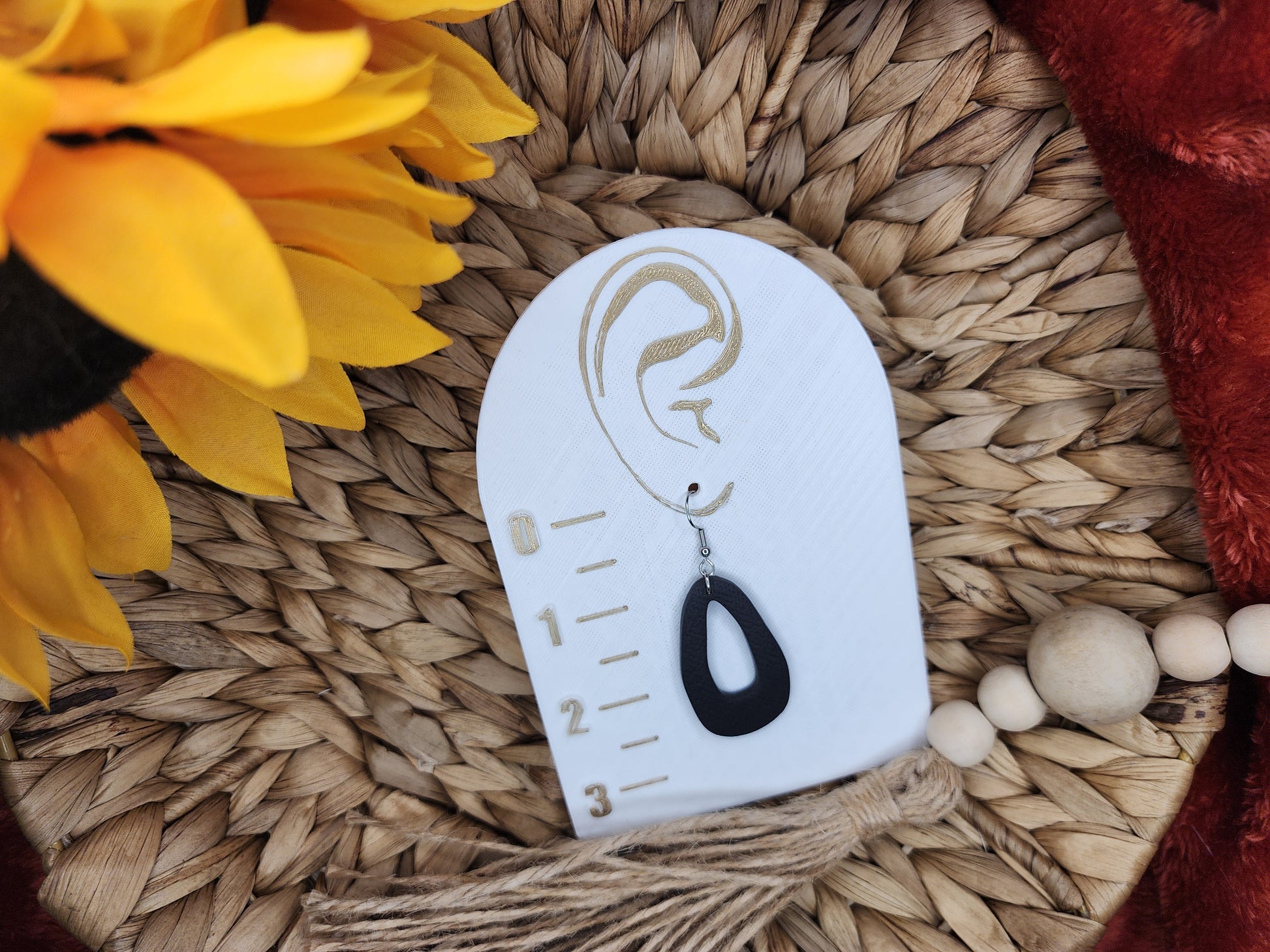 Add a touch of elegance to your look with our Black Teardrop Medium Dangle earrings. The sleek, textured design makes these earrings simple yet stylish. Perfect for any occasion, these earrings are a must-have for any fashion-forward individual looking to make a statement.