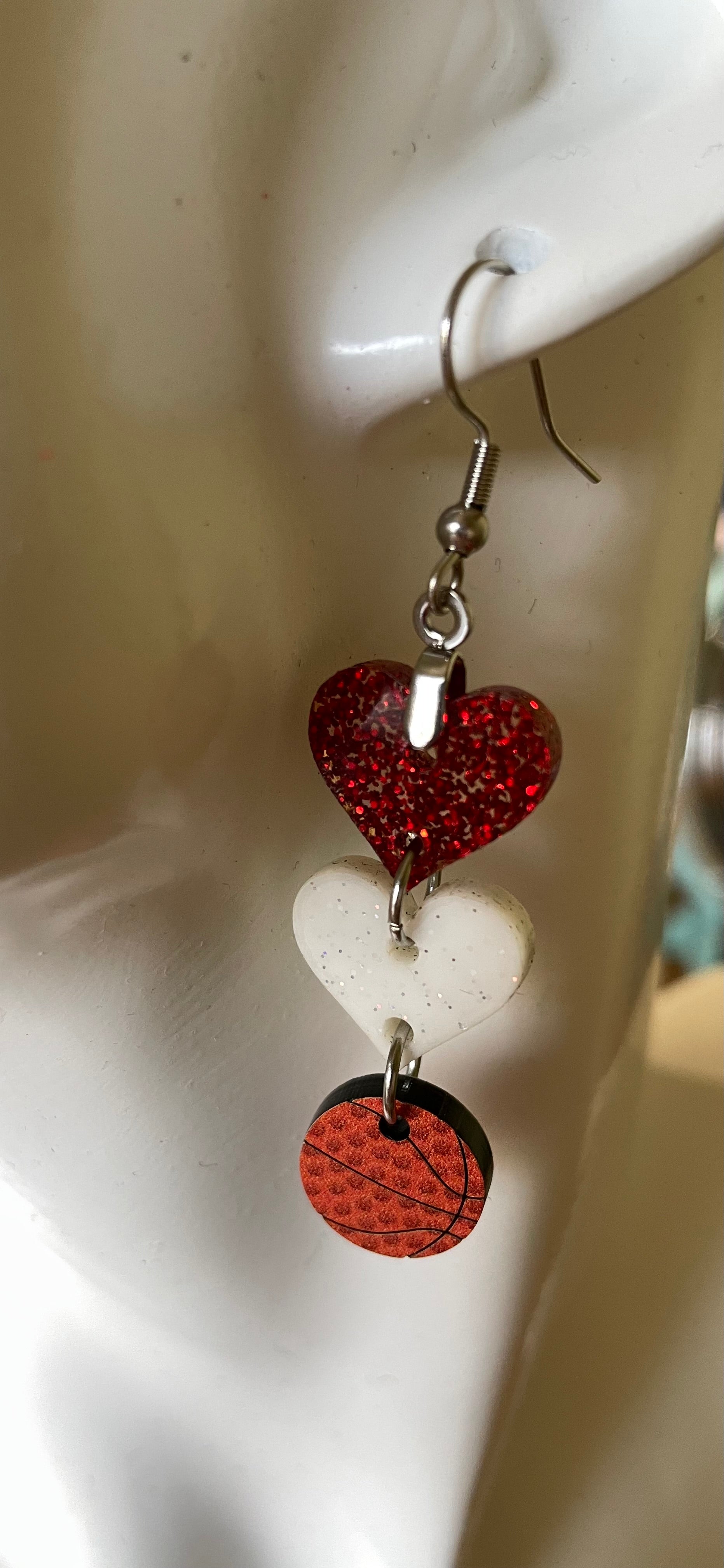 Show off your team pride with our Eagles heart drop basketball earrings! Made with sparkly acrylic, these earrings are perfect for game day or any day. Get ready to support your team in style!