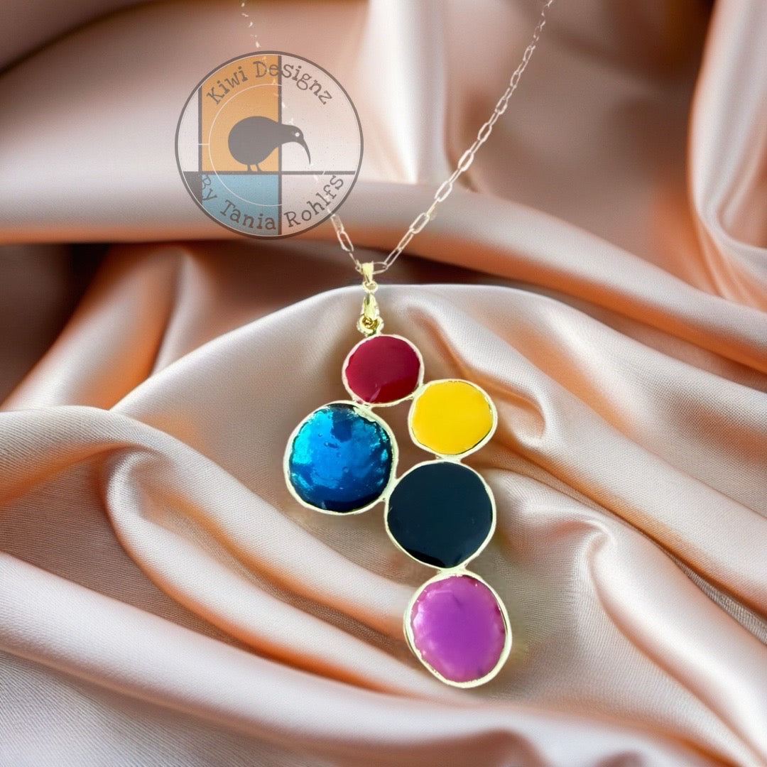 Elevate your style with this elegant Five Circle Pendant Necklace, featuring five vibrant colored circles set in a radiant gold tone. Suspended from a delicate paperchip chain, it offers a lightweight, comfortable fit that’s gentle on your skin. Crafted to be tarnish-free and hypoallergenic, this necklace ensures lasting beauty and wearability for everyday elegance. Perfect for adding a splash of color and sophistication to any outfit.