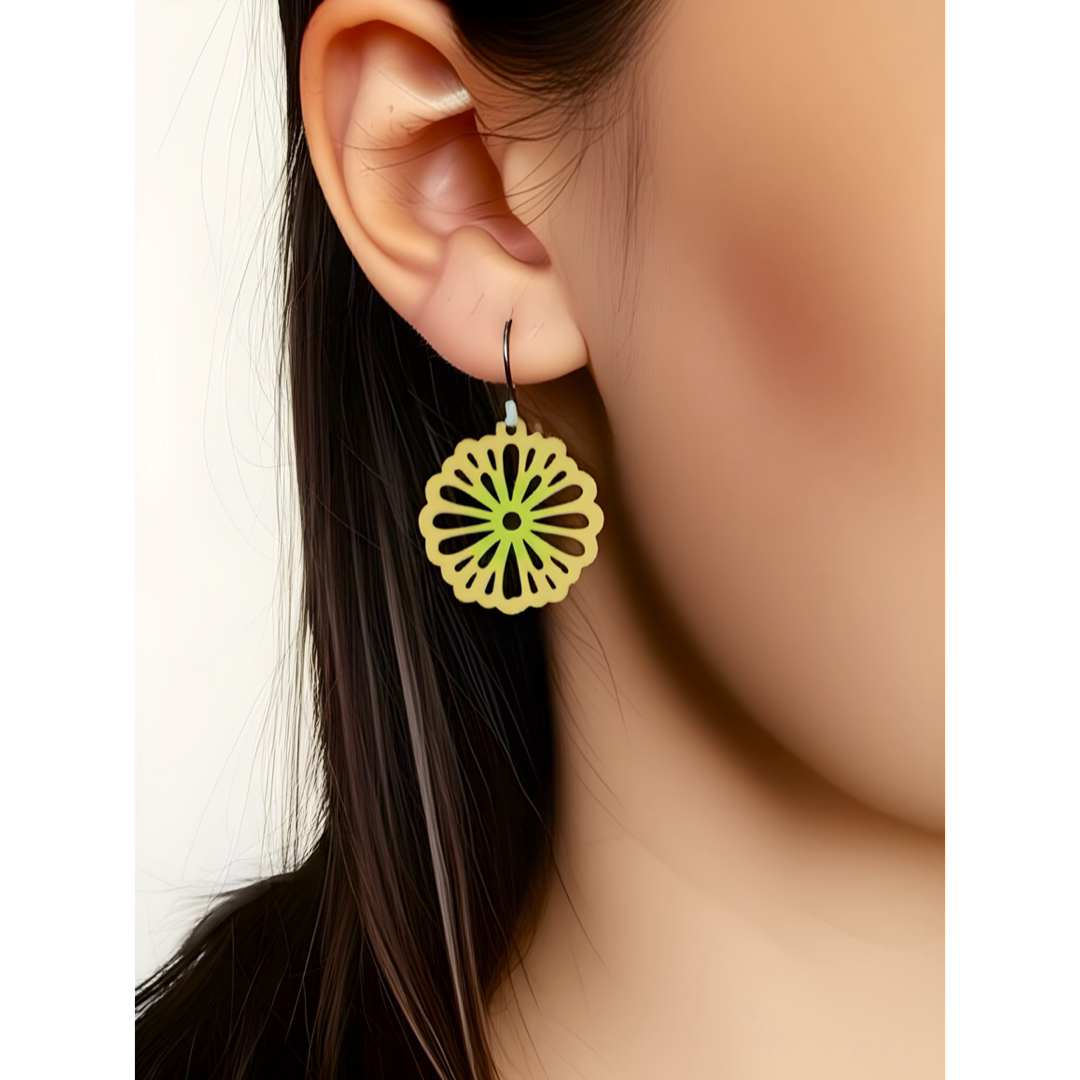 These Floral Cutout earrings combine delicate wooden laser-cut designs with vibrant hand-painted details, creating a unique accessory perfect for summer. Featuring hypoallergenic earring wires, they ensure comfortable wear even for sensitive ears. Lightweight and stylish, they add a fresh, natural touch to any outfit, making them an ideal choice for sunny days and warm evenings. Available in multiple colors.