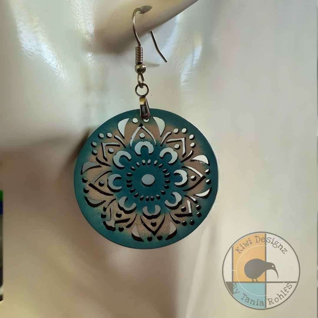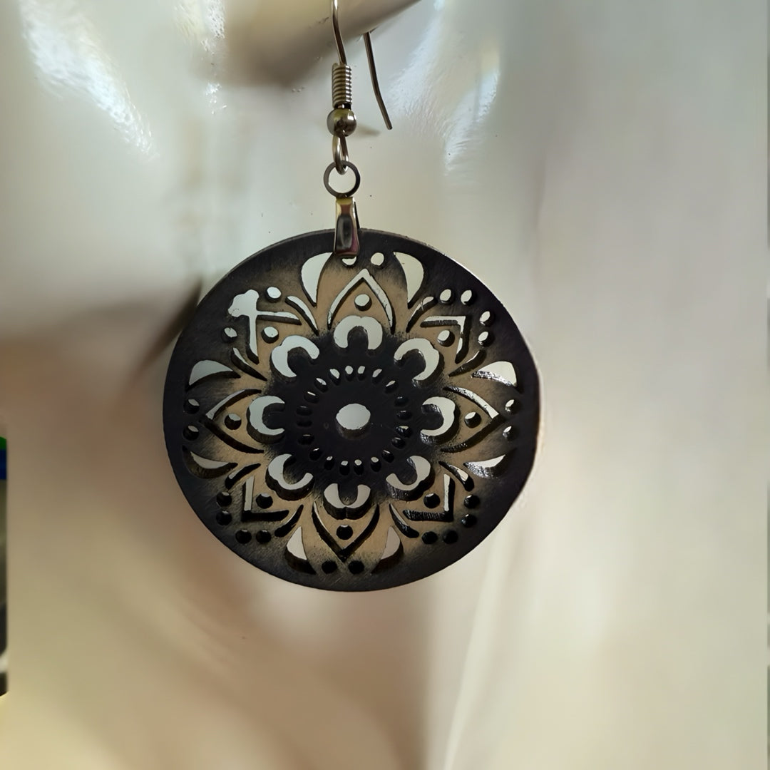 Floral motif cutout wooden earrings