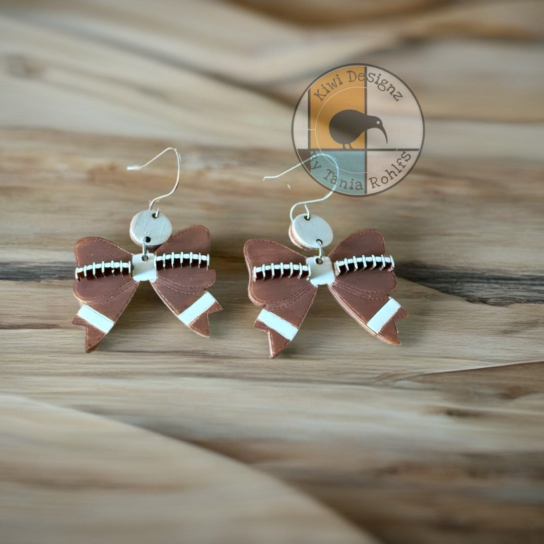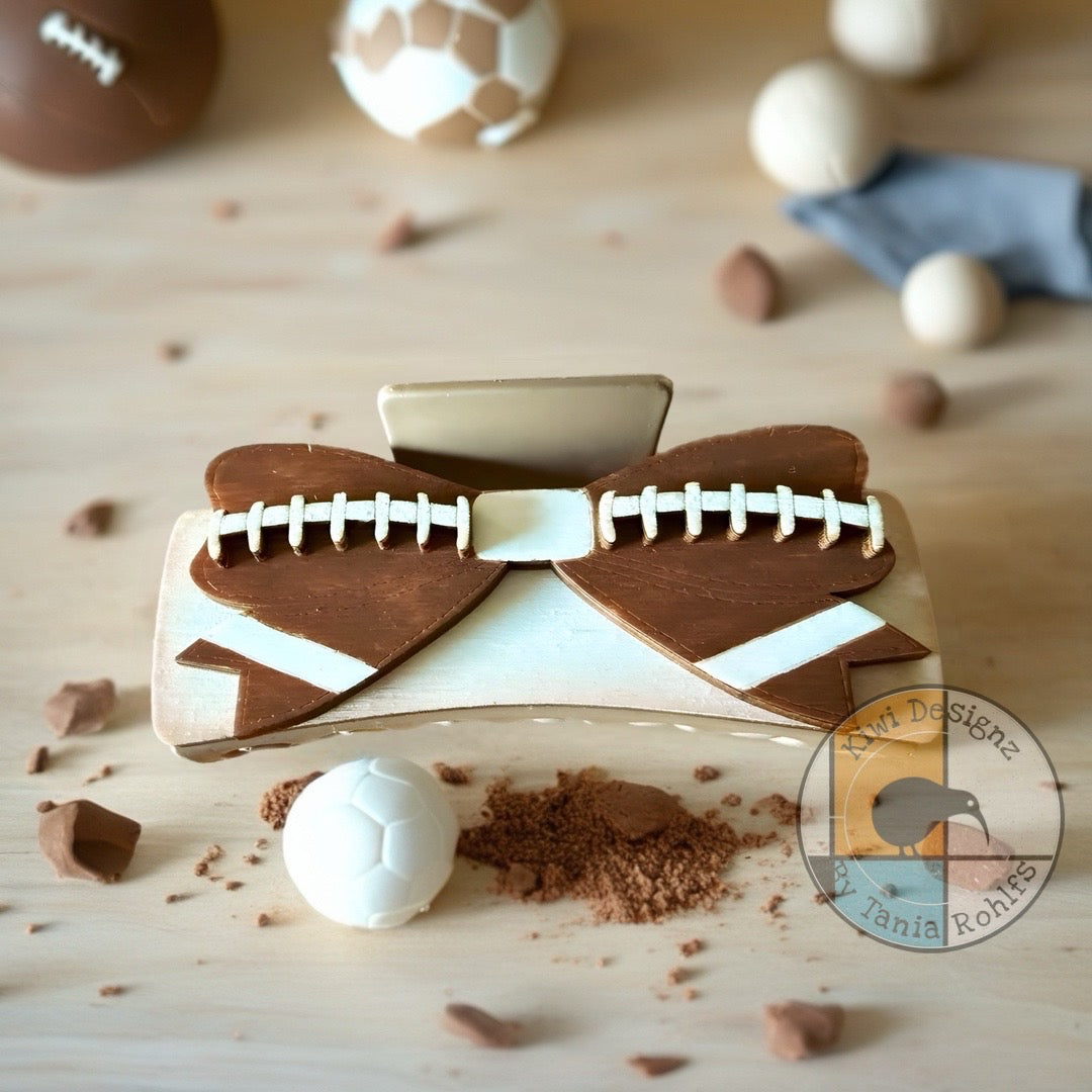 Show off your team spirit with this playful set featuring a hand-painted, hand-crafted football claw clip and matching earrings. Choose to wear them separately or together for a fun, coordinated look. Available to purchase separately. The earrings come with hypoallergenic wires, keeping your skin happy while you cheer on your favorite team in style!