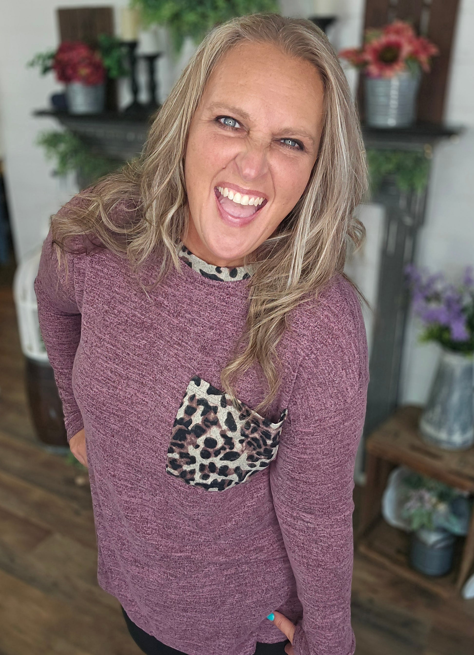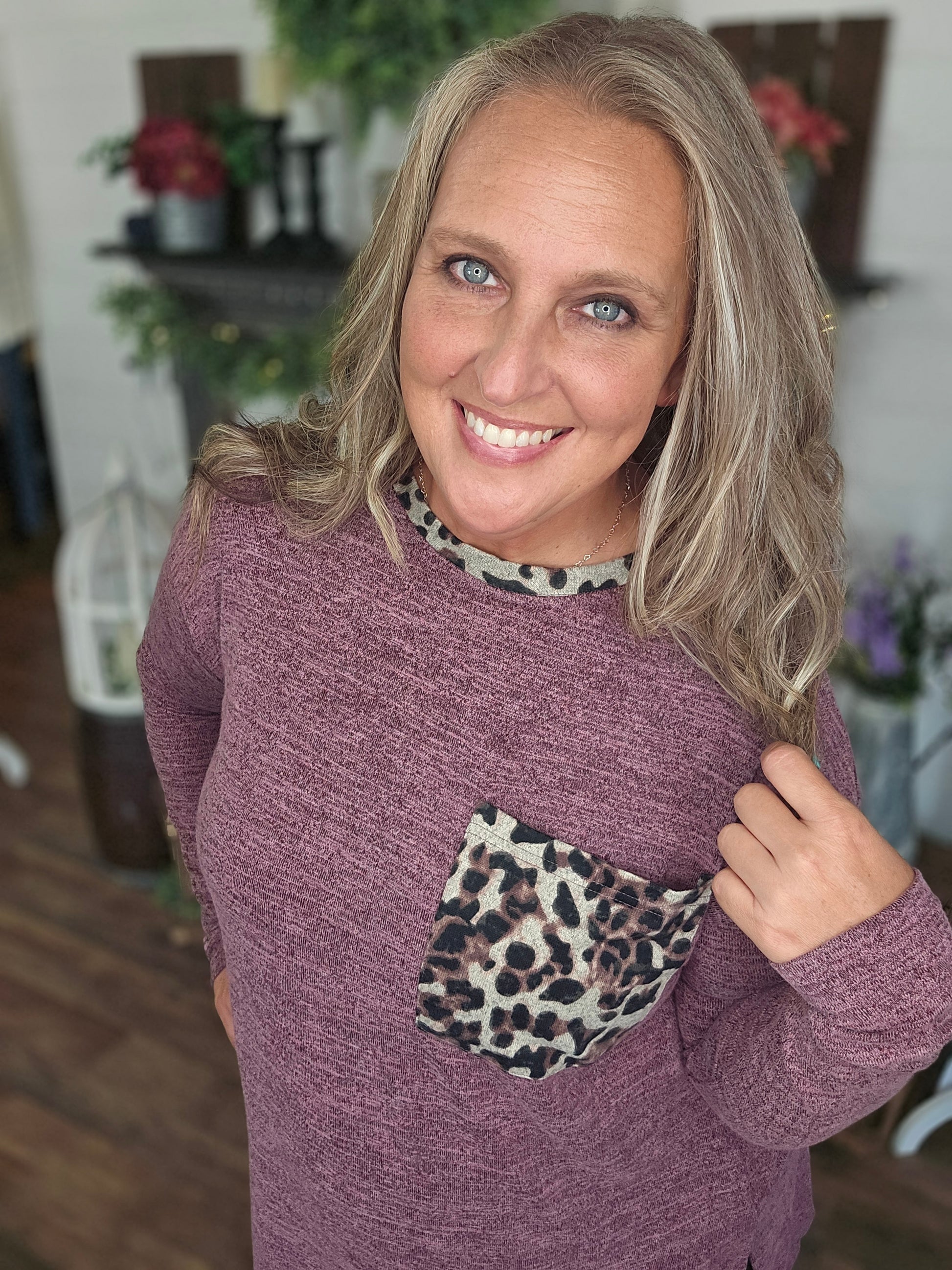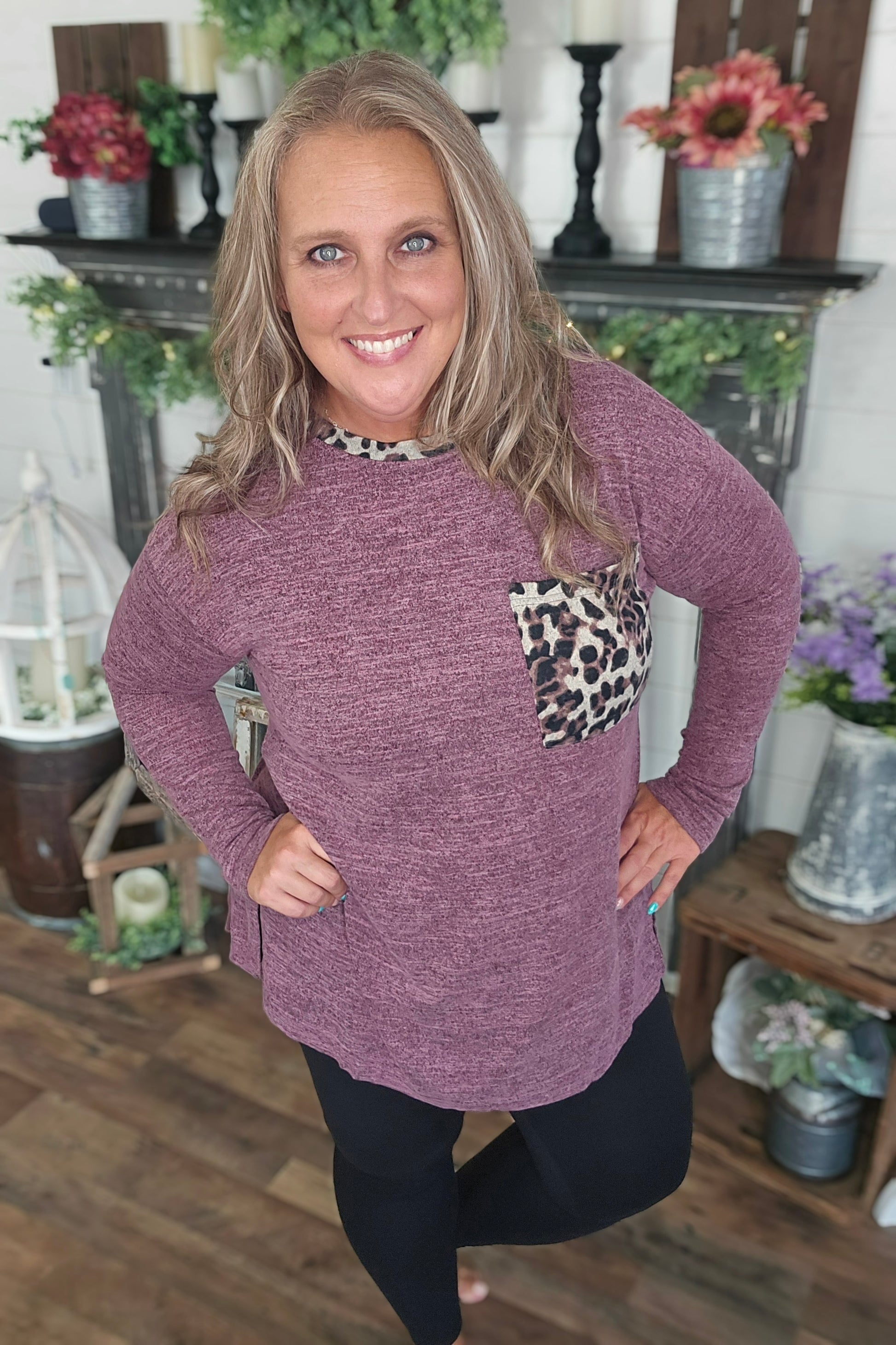 This Hacci 2Tone Leopard Accent Tunic by Easel is sure to make a statement with its trendy leopard print pocket. Its pinched back detail adds a touch of unique style while its loose fit provides both comfort and a flattering silhouette. Stand out in this must-have tunic!