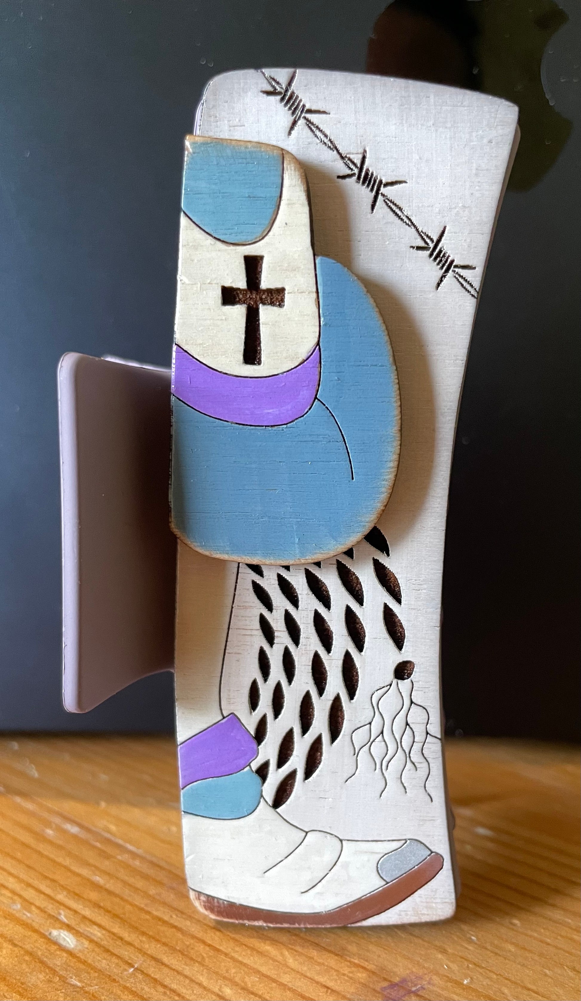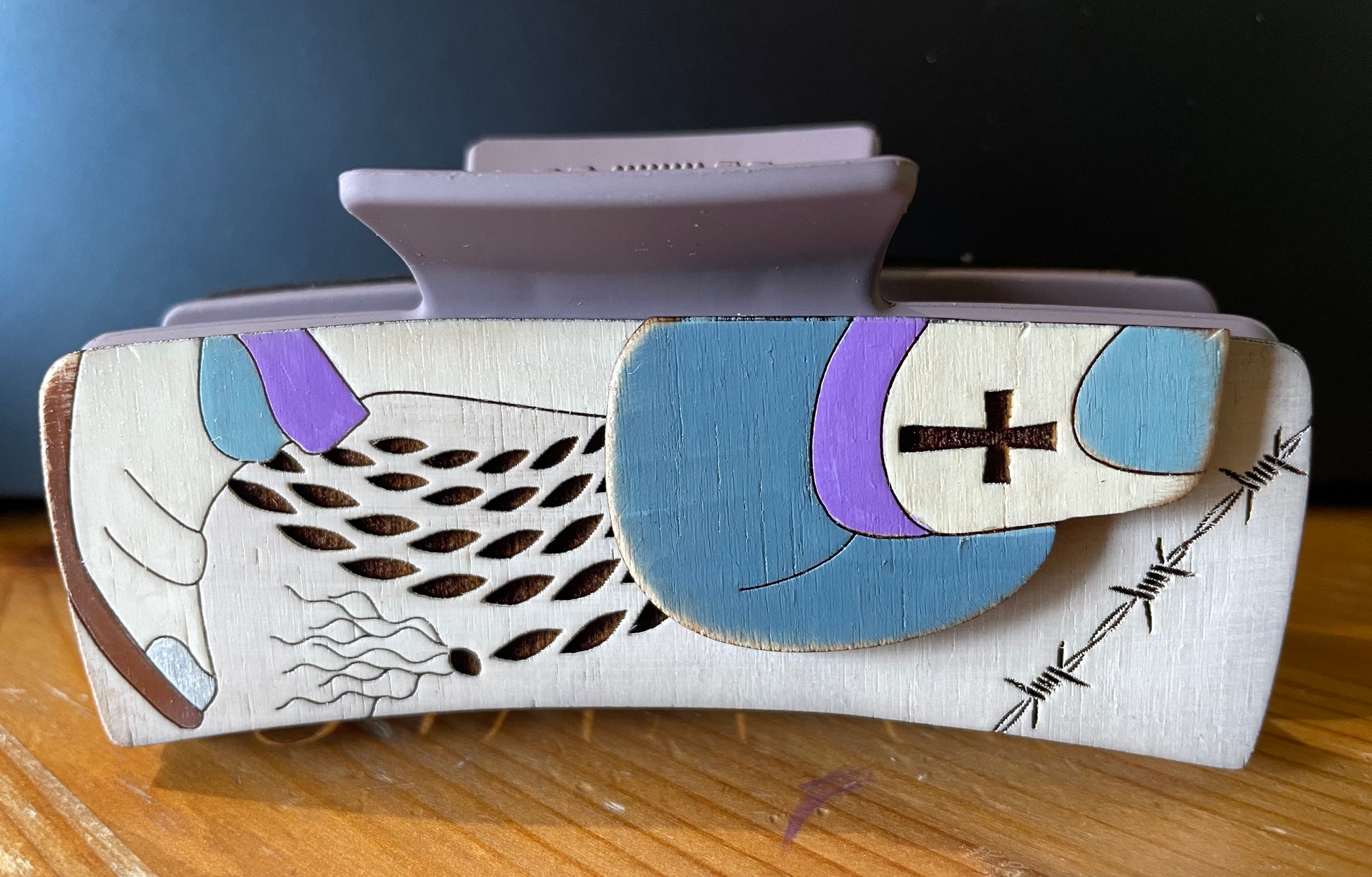 Saddle up in style with our Hat & Boots 4" claw clip! This western-inspired clip features a hand painted design and adds a touch of rustic charm to any hairstyle. Don't just tame your locks, make a statement with this stylish accessory. Yeehaw!
