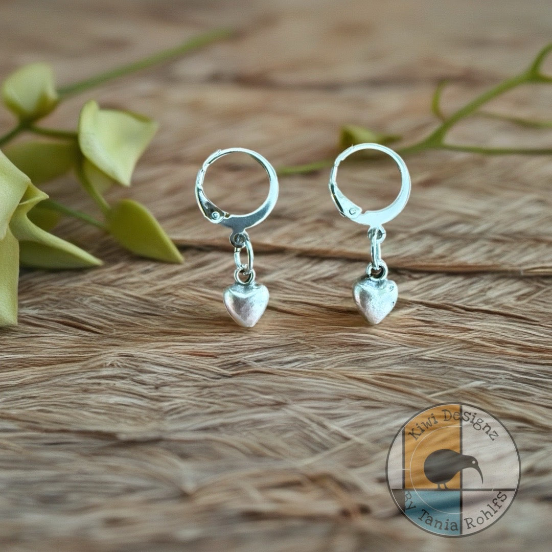 Heart drops lever back silver earrings