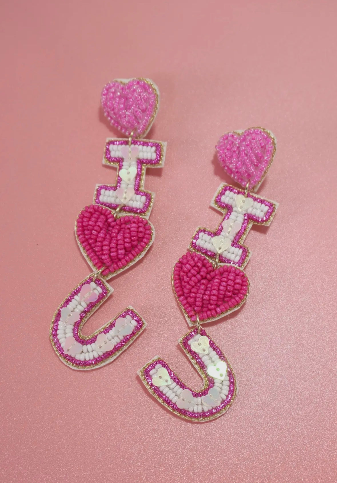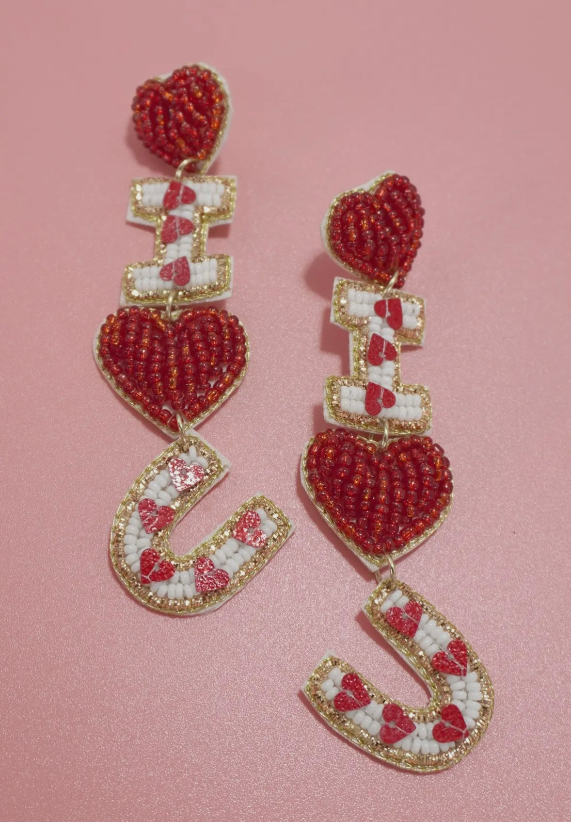 Expertly crafted with a delicate drop design, these I Luv You Beaded Earrings will add a touch of elegance to any ensemble. Made with stunning beads, they offer a unique and stylish look that is perfect for any occasion. Elevate your accessory game with these timeless earrings.