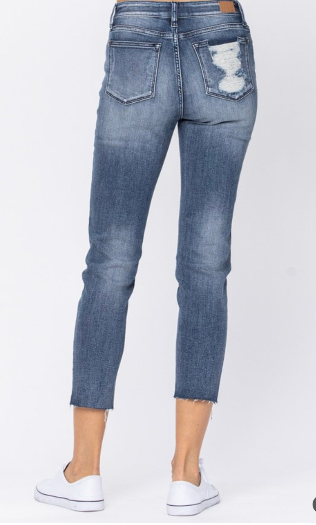 The Judy Blue Raw Hem Relaxed Fit Capri features a distressed back pocket for a stylish edge. Made with high-quality materials, these capris provide comfort and durability. Perfect for everyday wear or to dress up for a night out.