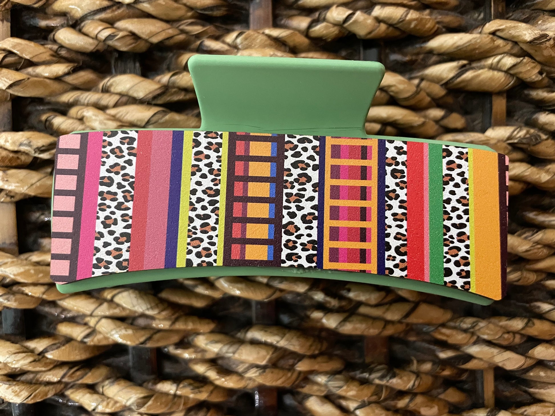 Enhance your hairstyle with this fierce Leopard Print 4" claw clip. Its stylish design adds a touch of wildness to any look. Experience the convenience of a 4" claw clip while making a fashion statement. Perfect for adding an unexpected pop of personality to your hair!