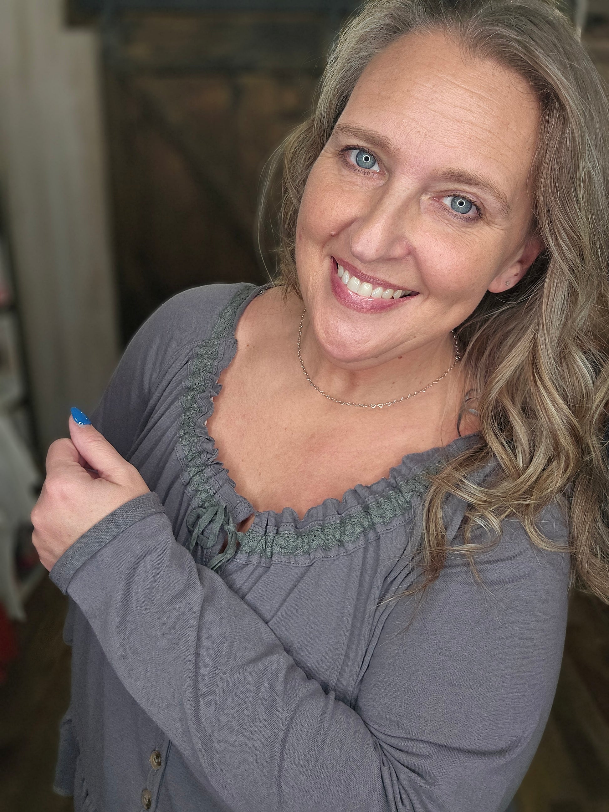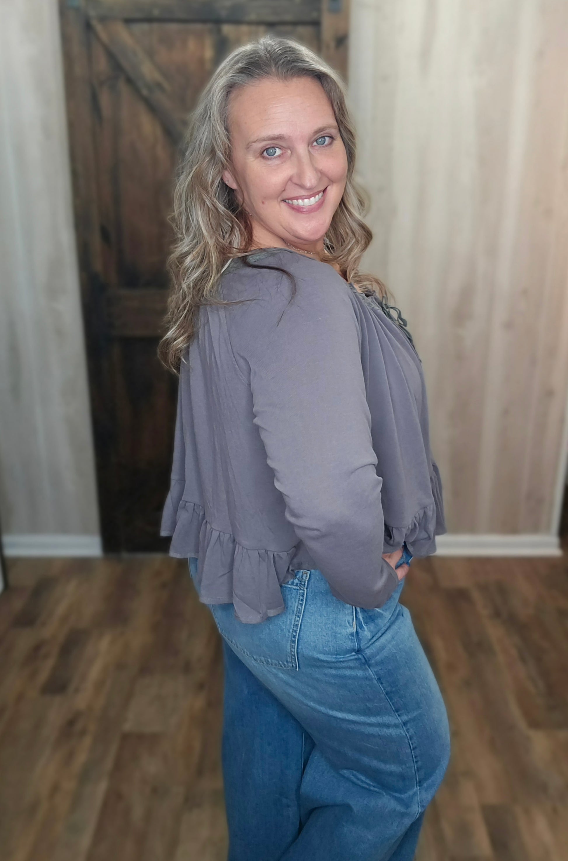 The Lookin Good Knit Top features an elastic neck that ensures a comfortable fit while accommodating various body types. Its ruffle hem adds a stylish element, allowing for versatile pairing with different outfits. This top combines practicality with aesthetic appeal, enhancing both wearability and fashion.