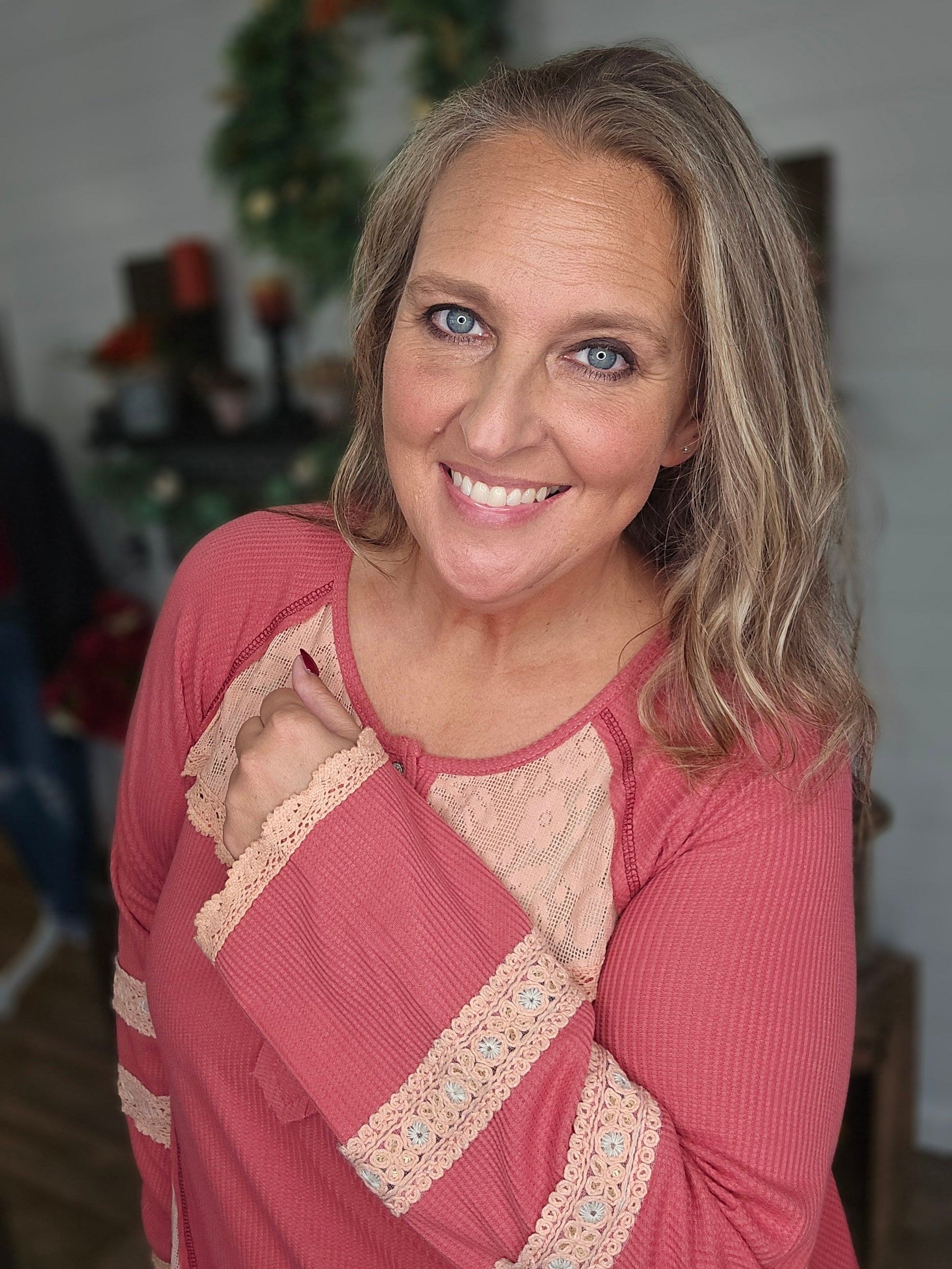 This elegant top features lovely lace panels, adding a touch of sophistication to any outfit. The intricate design adds a feminine touch, perfect for any occasion. Elevate your style with the Lovin the Lace Long Sleeve Top.