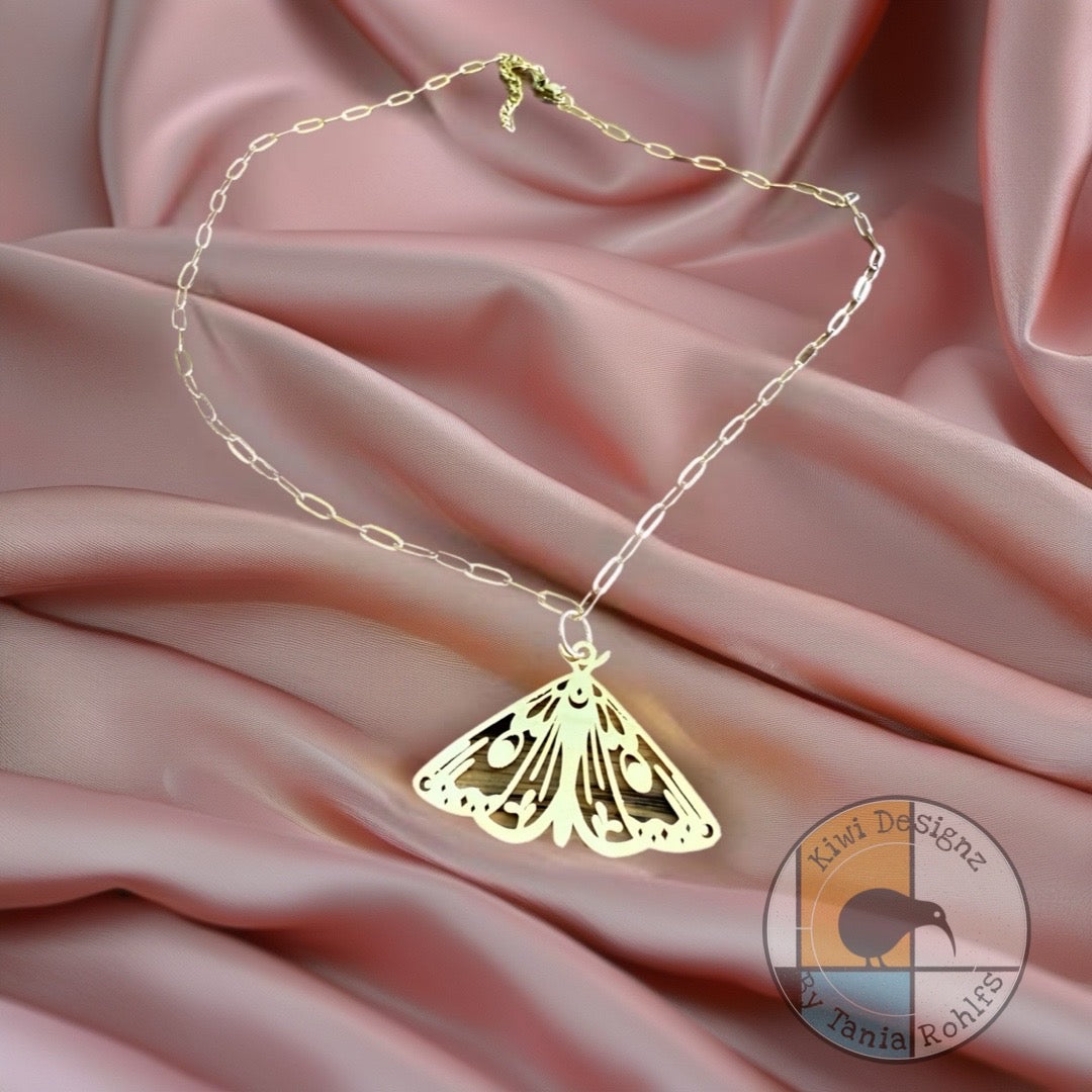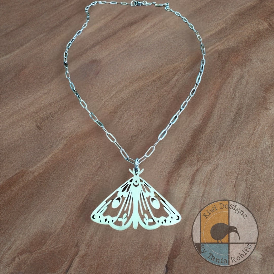 Elevate your style with this elegant moth pendant necklace crafted from durable stainless steel. Hypoallergenic and tarnish-resistant, it ensures lasting shine and comfort for sensitive skin. The delicate paperchip chain adds a modern touch, making it a versatile accessory for any outfit. Embrace timeless beauty and effortless sophistication with this unique piece.