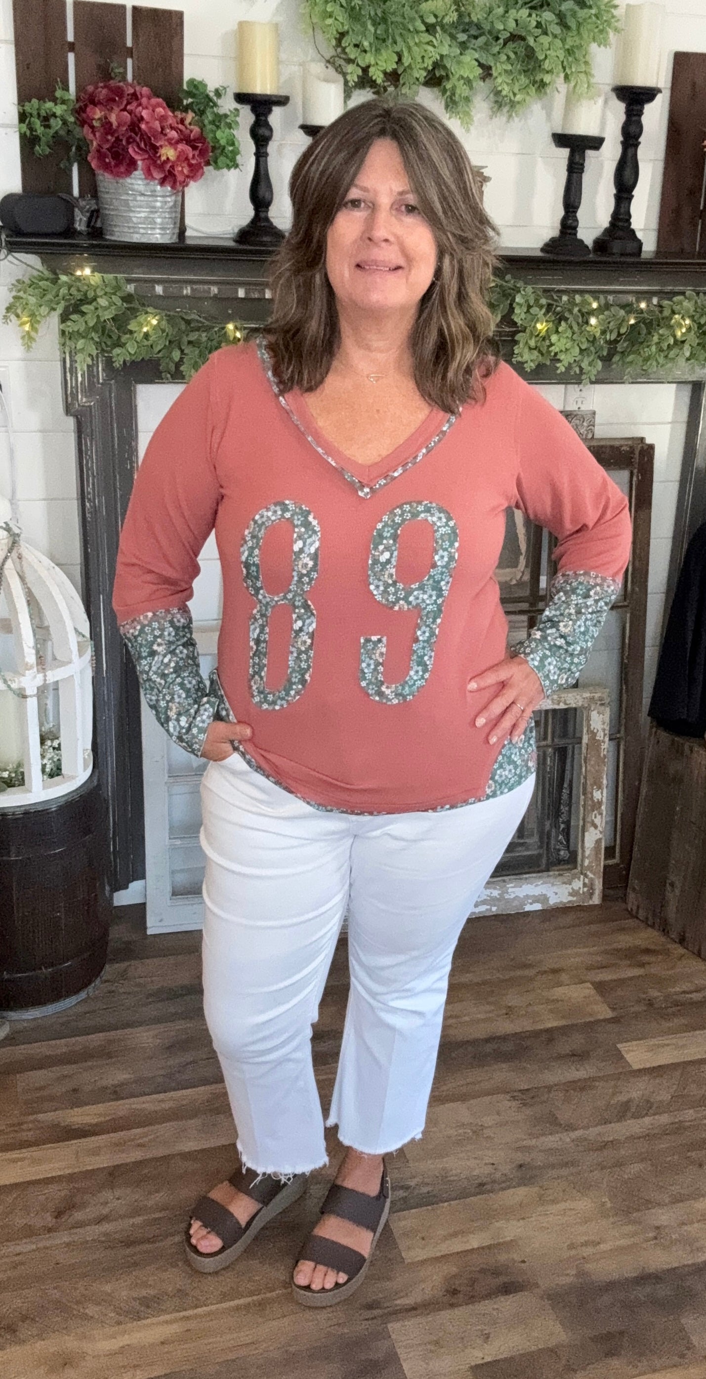 This Neesie Number Patch Top features a long sleeve design and a unique floral numbers patch. Made from high-quality materials, this top is perfect for adding a touch of individuality to your wardrobe. Stay stylish and stand out with this one-of-a-kind piece.