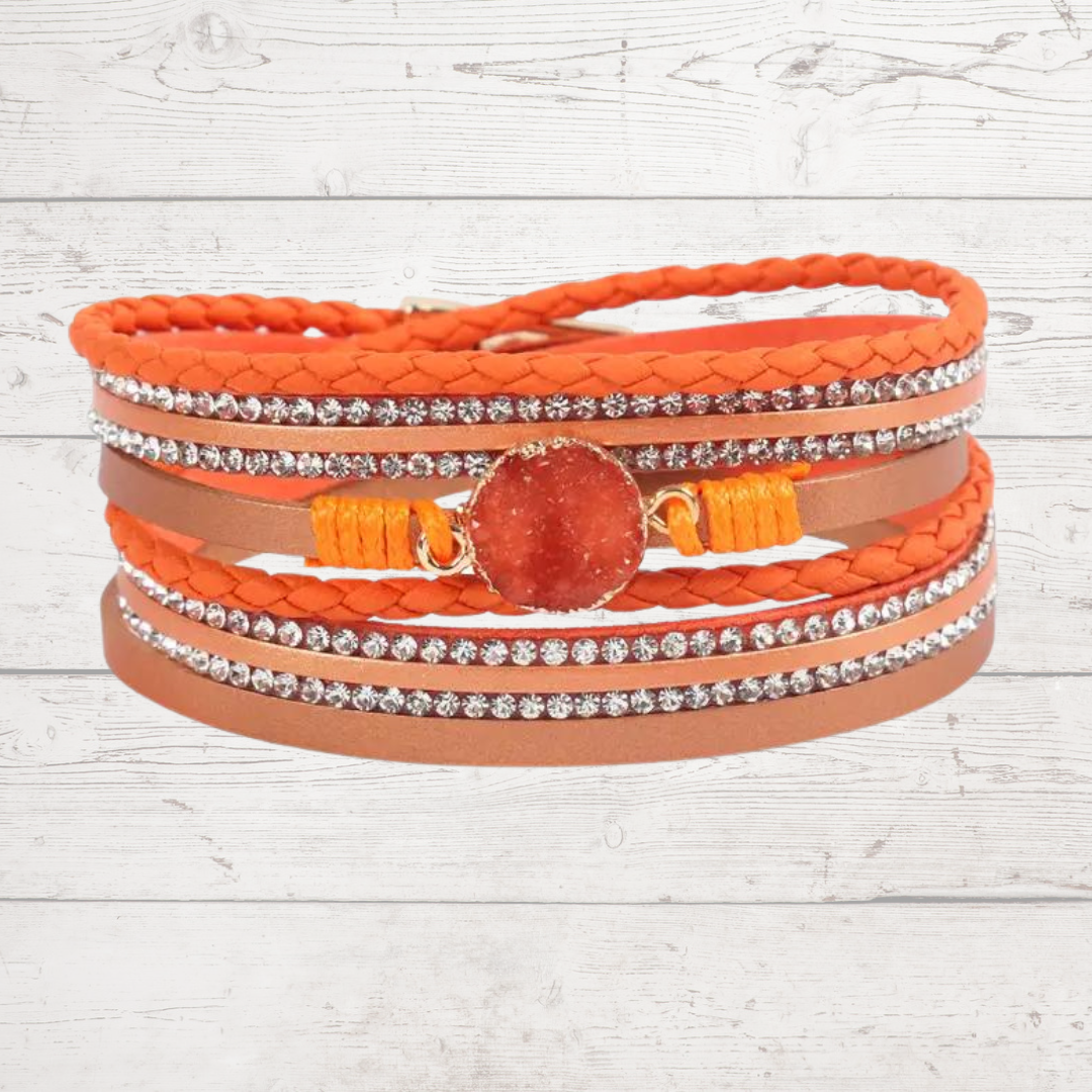 Druzy Rhinestone Leather Wrap Magnetic Bracelet is a stunning and elegant accessory that can dazzle your wrist. This bracelet features a druzy rhinestone, a leather wrap, and a magnetic clasp.