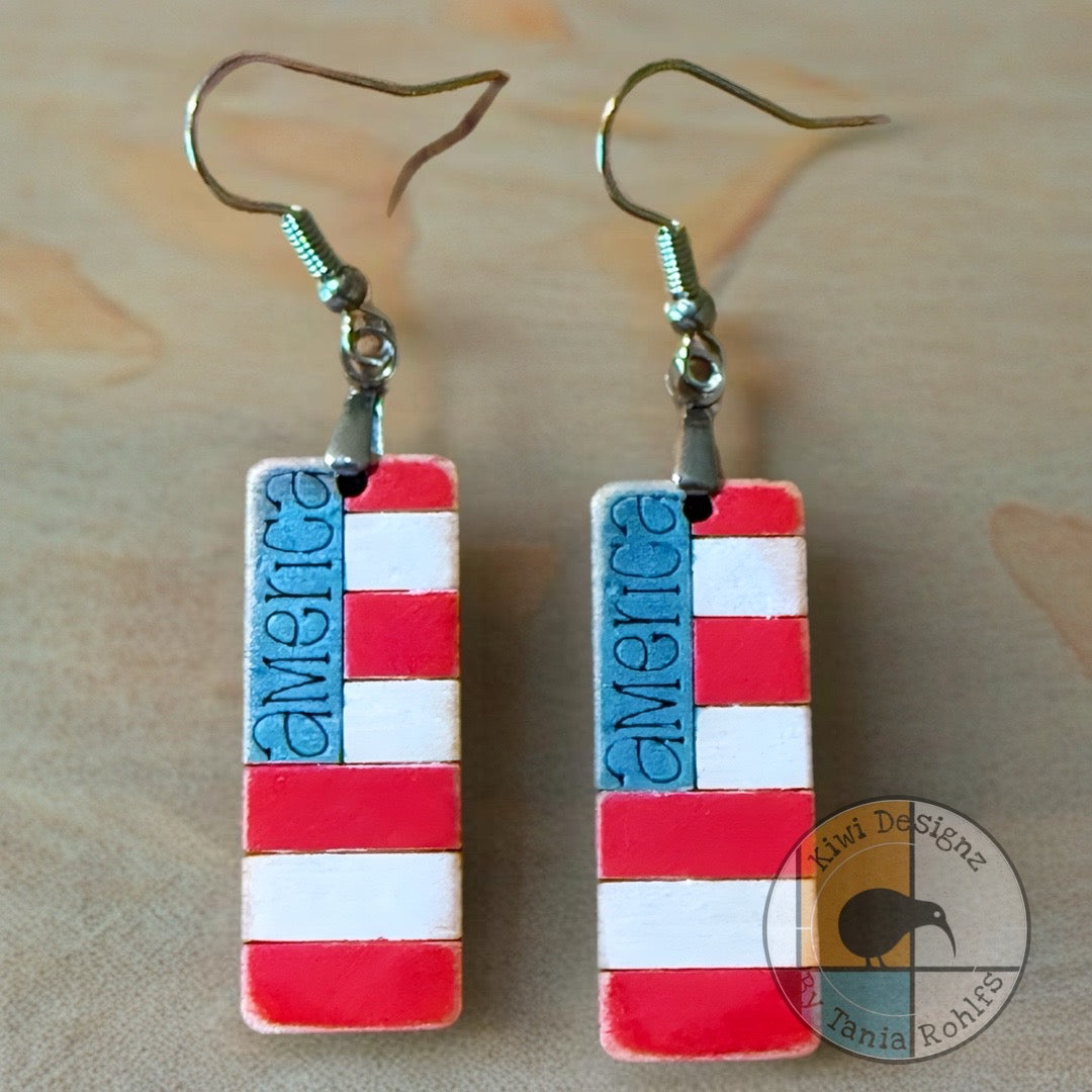 Add a splash of fun to your look with these 1.25" wooden patriotic earrings! Hand-painted with vibrant colors and featuring hypoallergenic stainless steel wires, they’re as friendly to your skin as they are festive. Lightweight and playful, these earrings make showing your patriotic spirit a breeze!