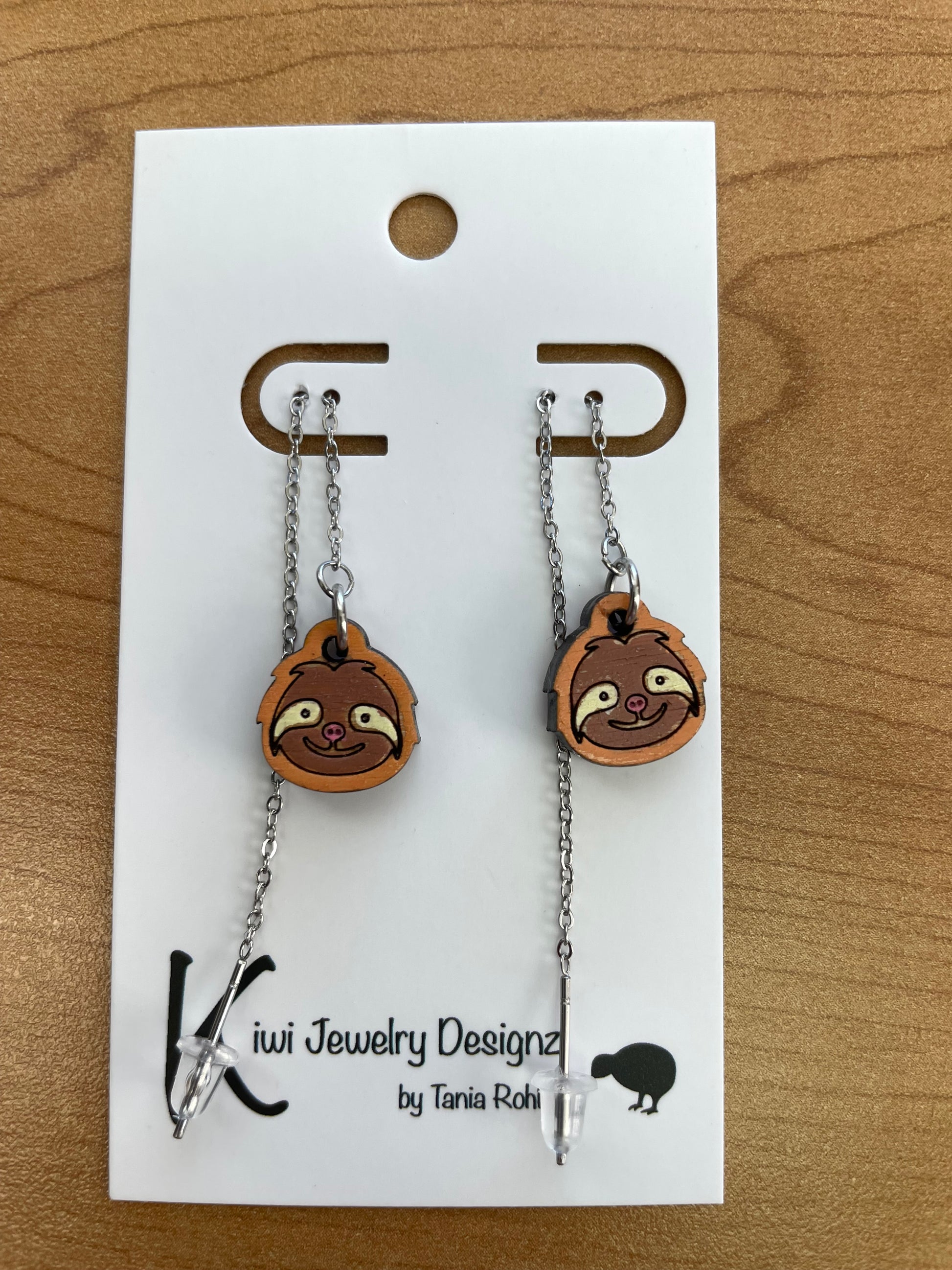 Upgrade your accessories with our sloth threader! With a shorter length perfect for youth, this hand painted hypoallergenic threader will add a touch of whimsy to any outfit. Embrace your love of sloths and make a statement with this unique piece.