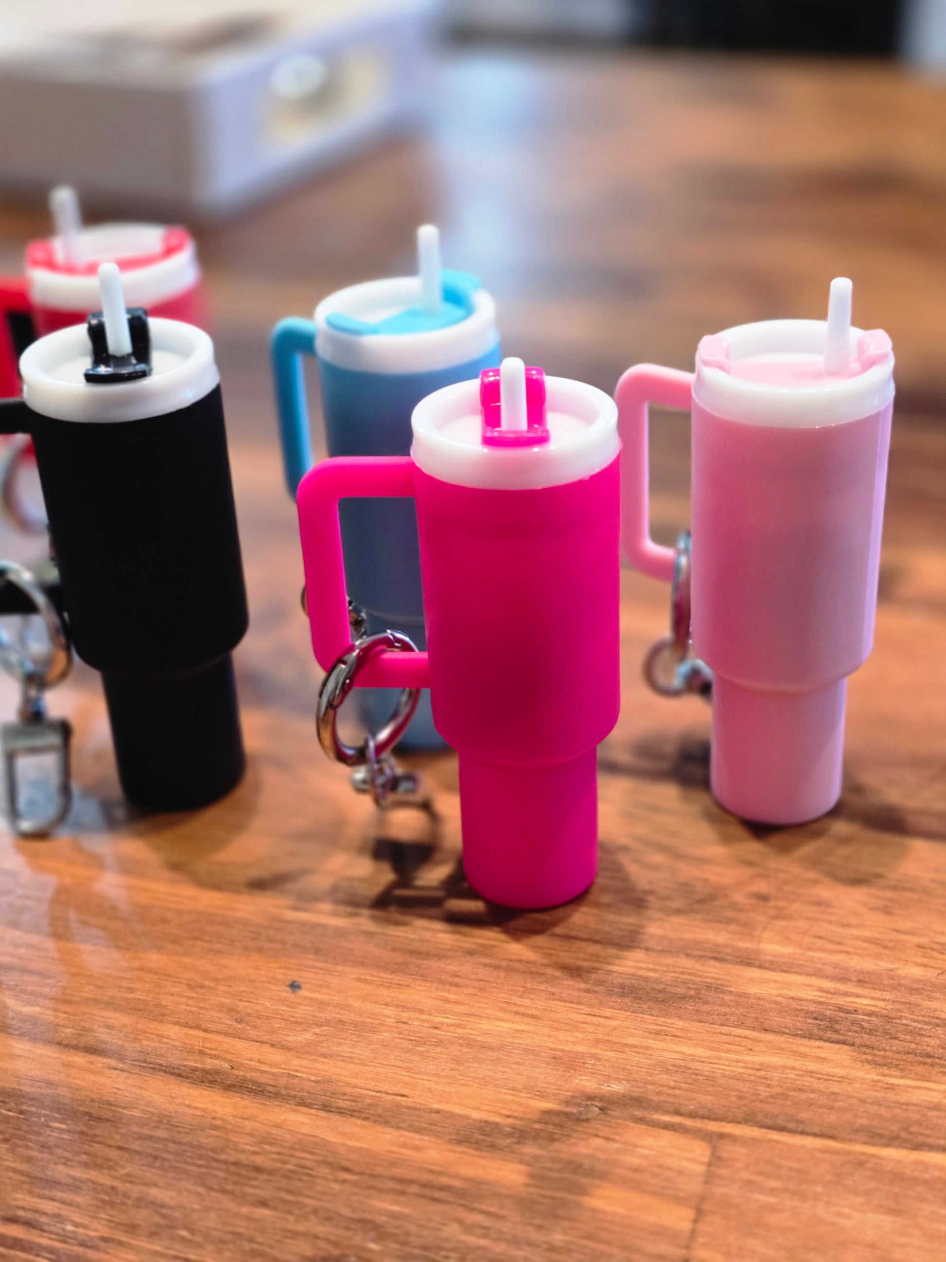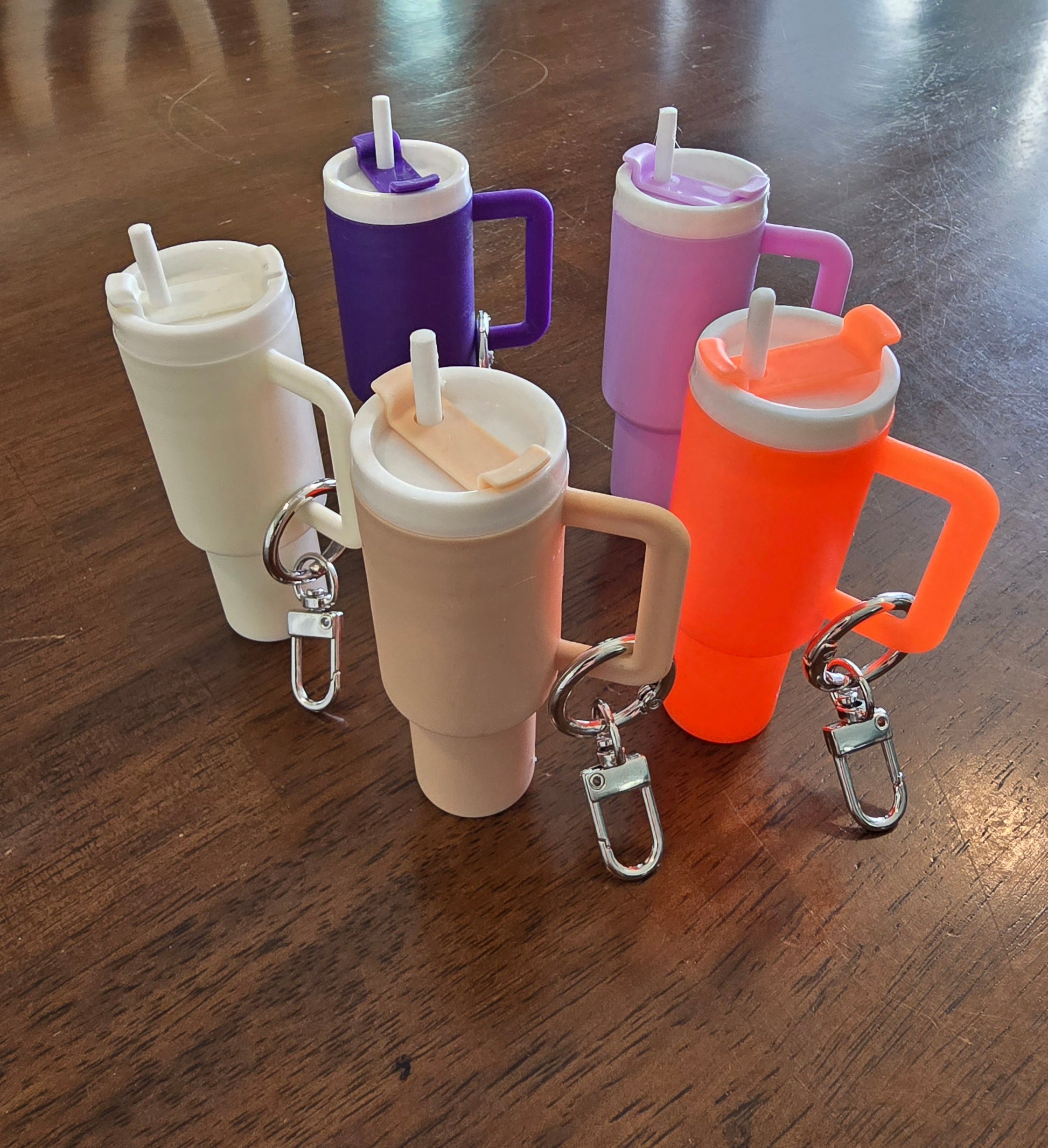 Score this adorable "Stanley" cup keychain! Not only does it add a cute touch to your keychain collection, but it also opens up to conveniently store chapstick. Keep your lips moisturized and show off your love for this playful keychain.