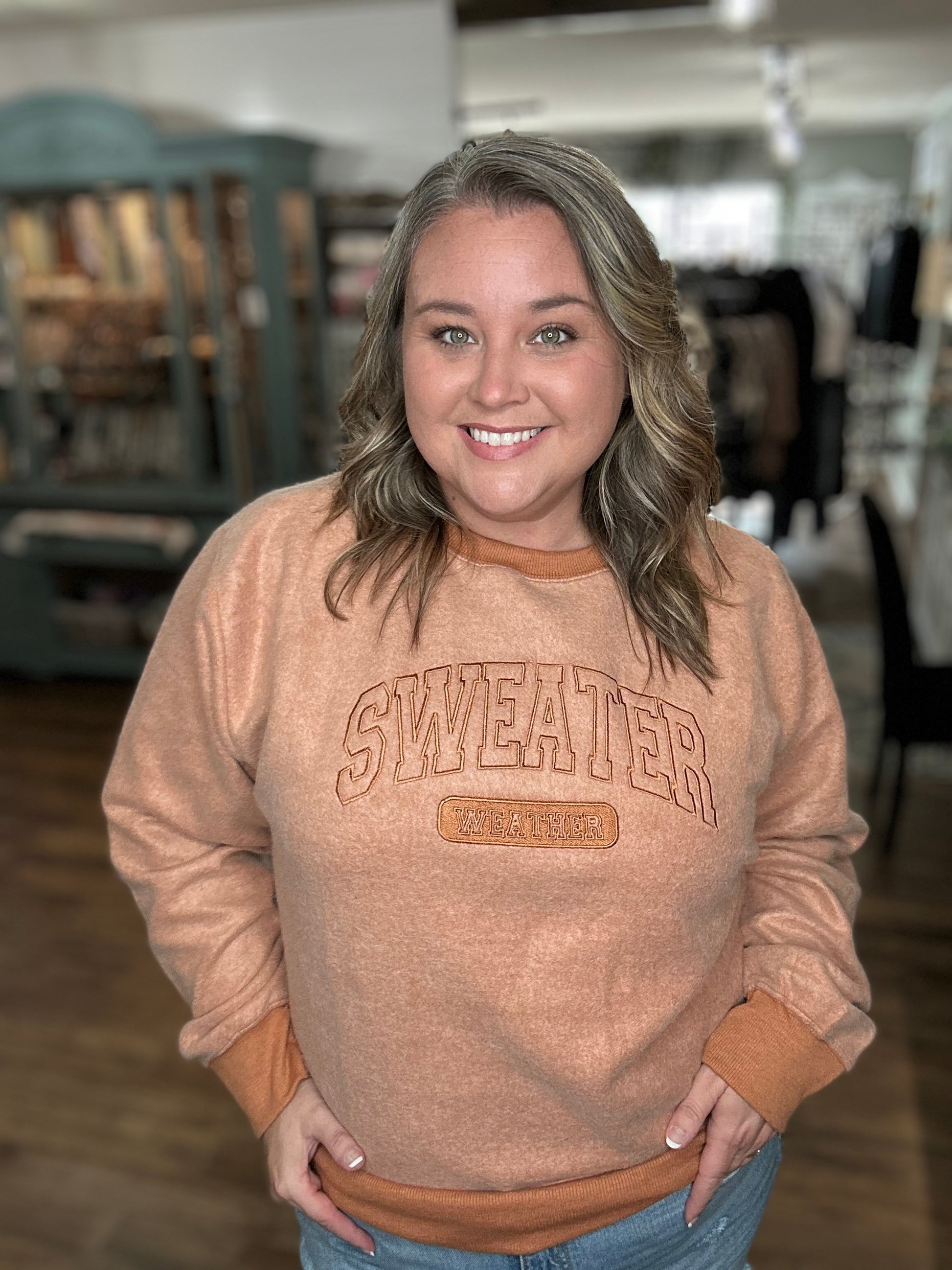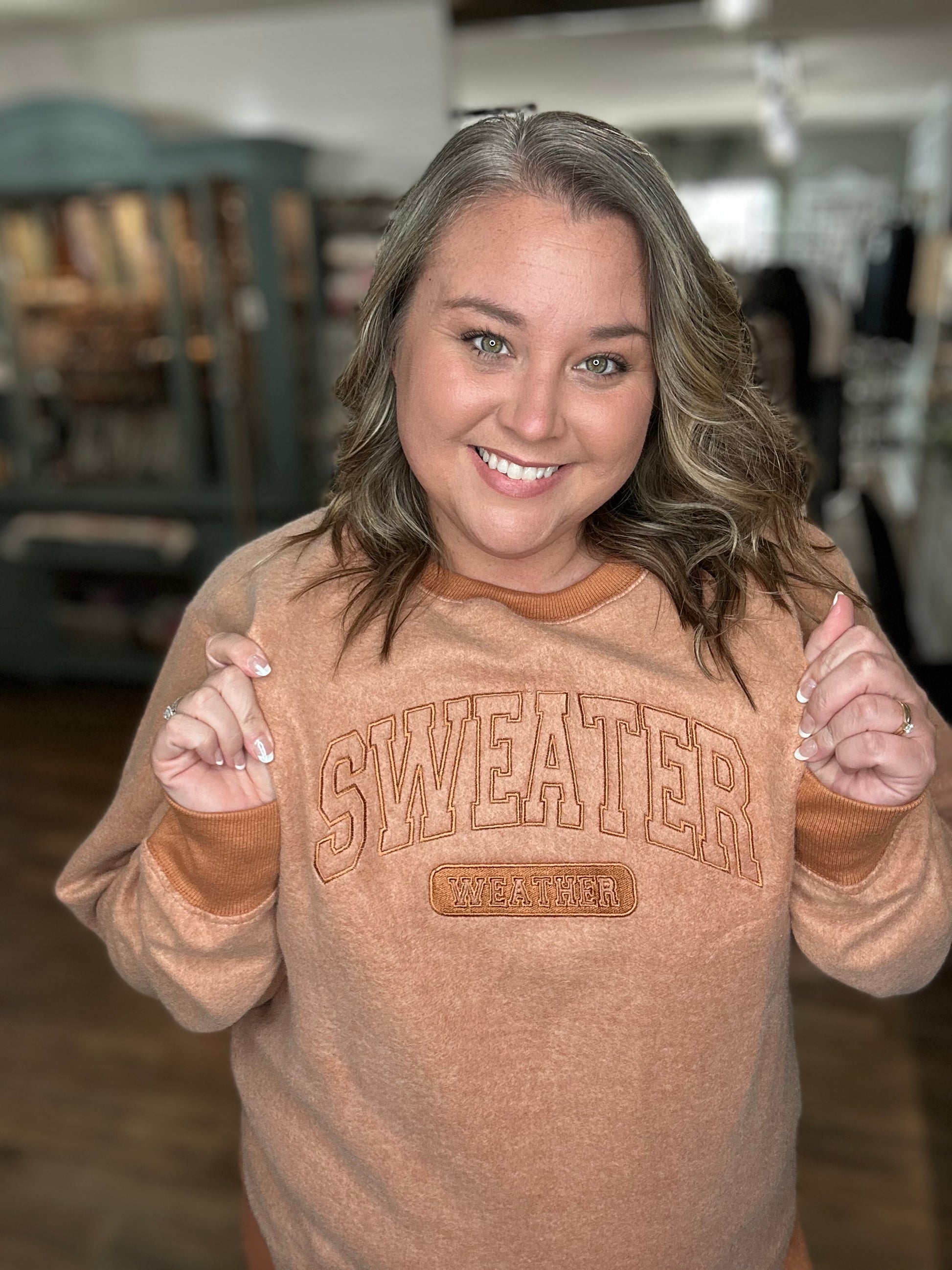 Upgrade your winter wardrobe with our Sweater Weather Sweatshirt. With its embroidered design and fuzzy material, this sweatshirt offers both style and comfort. Stay warm and fashionable all season long.