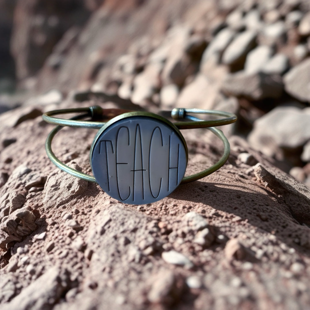 As an expert in the field of education, I highly recommend the Teach bangle large and small. Made from hand painted wood, this bangle serves as a unique and thoughtful gift for teacher appreciation. With two sizes available, it's the perfect accessory for any educator.