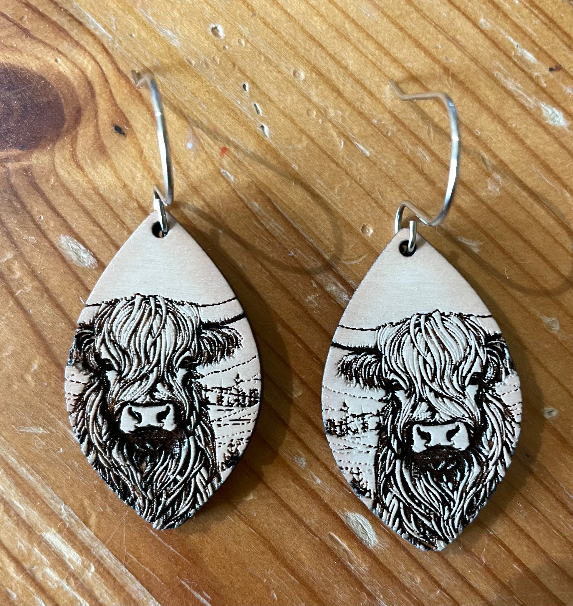 Add some whimsy to your wardrobe with these Teardrop Highland Cow earrings. Hand-painted onto wooden drops, these quirky earrings feature a charming highland cow design. Perfect for anyone looking to add a touch of fun to their fashion!