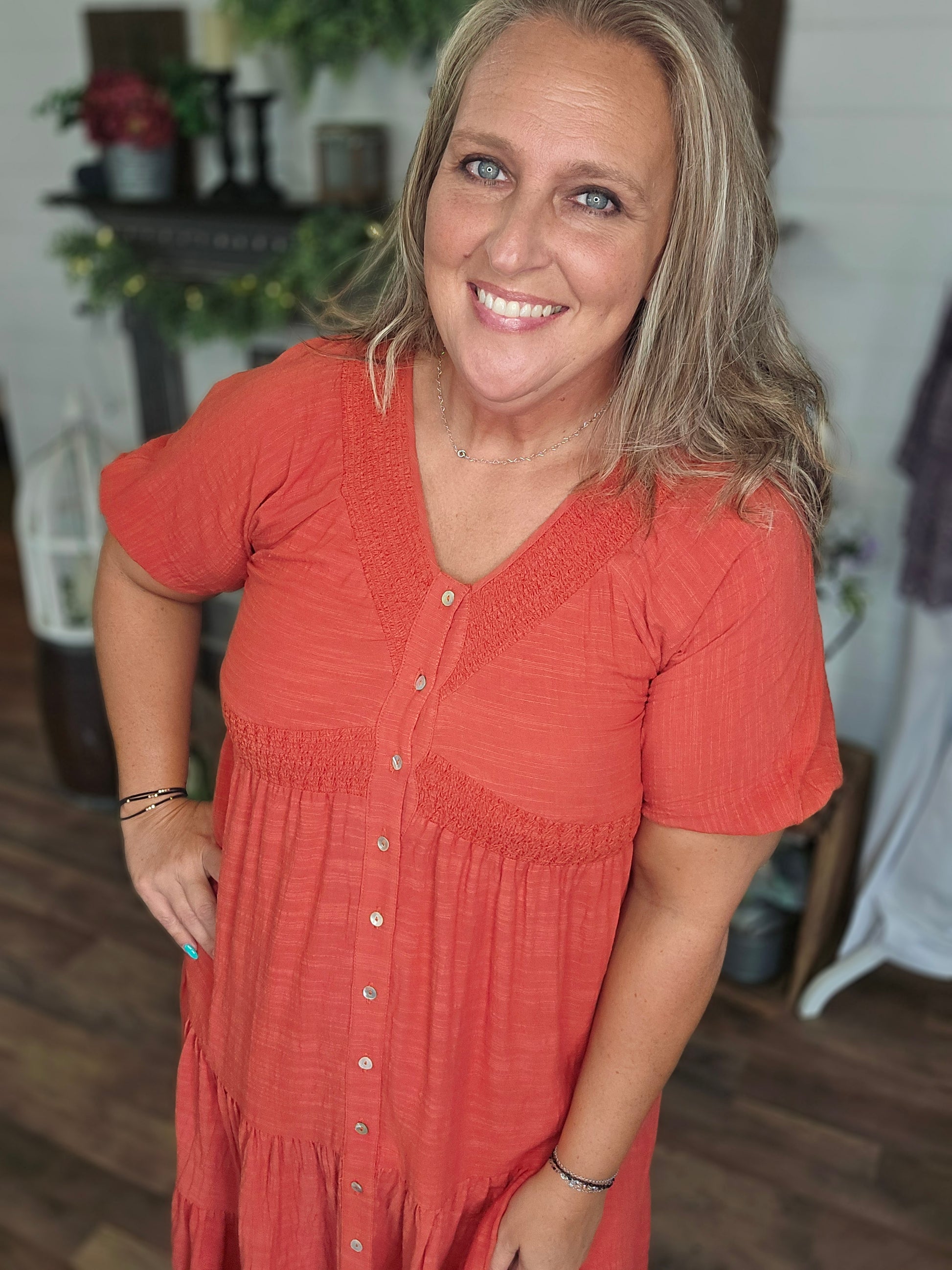 Expertly crafted with smocked detailing for a secure and flattering fit, this Tiered Linen Maxi Dress by Easel is the perfect addition to your wardrobe. The open back adds a touch of sensuality while the loose fit allows for comfort and effortless style. Made from quality linen material, this dress is both breathable and durable.